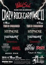 昨日は、新宿にあるライブハウスwild side tokyoで行われたCRAZY ROCK CARNIVAL 2011 に行って来ました~。残念ながら、予定されていたフランスのバンドHypnoseは、日本の放射能の影響で渡航禁止になってるらしく;キャンセル。各方面で、このような影響で来日中止が続々と発表になったり外国人観光客の激減など悲しい事態になってますがそんな中でも、目当てのオーストラリアのバンドTRUTH CORRODEDはちゃんと来てくれた感激だよ!!!ありがとう、ありがとう!!!!出演バンドは次の通り↓TRUTH CORRODED(オーストラリア) / LAMENTAZIONE(大阪) / YOUTHQUAKE / Tyrant Of Mary / WARGASMATRON / OGRE / END ALL17時から7バンドも出るということで、最近また坐骨神経痛の具合が芳しくない状態だったので不安だったんだけど、なおみさんが会場に入ってサッと椅子を確保してくれたーーー本当にありがたかった!!申し訳なかったけどTRUTH CORRODED以外はほとんど座って楽しみました。トリのTRUTH CORRODEDまでは全部日本のバンドでしたがいやはや、まだまだ知らないだけで良いバンドが埋もれてるー。良かったなー。ツイッターで相互フォローさせてもらってるTyrant Of Mary!すっごく好みの音でかっこよかったよ!パンテラとCOBを混ぜた感じで、ギターもアレキシっぽくすごくうまかった。YOUTHQUAKEをすっごく楽しみにしてたんですよー。予習もばっちりしていったの(本当ですよ!)そしたら何と、この日はカバ-曲ばかり(>_