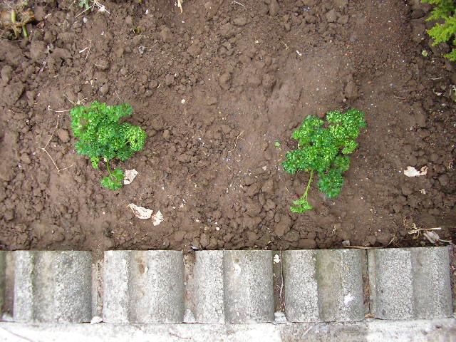 を確かめながら育てよう。右は別に買ったパセリ苗です。見本とします。