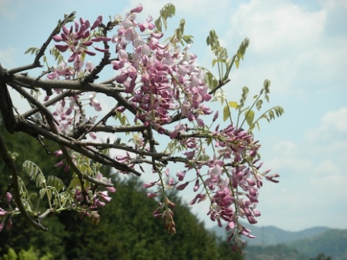 4月中旬、感性の豊かな知人と共に3人で、地元の「竜王山」(山口県山陽小野田市)を訪ねた。この竜王山は、瀬戸内海に面した標高135mの山で、山上の展望台からは、山陽小野田市や宇部市の市街地はもとより、関門大橋や四国、九州の連山、国東半島が一望でき、県内では「桜」の名所としても知られている。山上に車で向かう前に、この山の麓の喫茶店で昼食をとりながら、3月の「春の旅」の思い出話をするなかで、「シリウス」を意識させられた体験が2度あったことも話していた。そして会話も一段落した後、久しぶりに山上の南麓にある「八大竜王社」に参拝することになった。すると御神前で私は、何故か参道の方向を知りたくなり、すぐ方位磁石を取り出して磁針を見てみると、なんと!真南から東方に約20度の「シリウス」が昇る方位を示していた・・・。アチャ~~~!「2度あることは3度ある」とは良く言ったものである。しかもその「3度目の正直」を、地元の山口で実感することになろうとは・・・。ちなみにこの「竜王山」は、その「シリウス」の出現を示す方位に山並みが続き、麓の「本山岬」の方面に連なる構造をしており、この南麓に鎮座する竜王社から岬が見えたとすれば、毎年の冬至にはその方向から「シリウス」が昇っていたことになる。◎関連記事・・・春の旅日記(24)⇒リンク上にリンクした関連記事では、「シリウス」を意識したことから童謡「かごめの唄」が浮かんで、「亀甲紋」「ダビデの星」「六芒星」などと同様の形状が連想されたが、ここで「かごめ」=「籠目」の「籠」という漢字には「龍(竜)」が入っていることに気付いた。そこで思い出したのは・・・シリウスには「龍神」が関連していた・・・ということ。◎関連記事 2012年04月12日の日記・「金龍」に導かれ・・・ ⇒リンク竹冠に龍で「籠」、竹で編んだ籠(カゴ)の目は「六芒星」にして、「龍」を暗示していた・・・。そのような連想から、改めて「龍神」に思いを馳せることになり、おそらくその強い想い入れがそうさせたのであろう・・・ある御方との出会い・・・が待ち受けていたのだった。※今日の画像は、この4月末に「藤」を見て歩いた際、最も印象に残った桃色の房を映したものだ。この期に及んでは、その藤房や藤蔓も「蛇」や「龍」、あるいは「龍蛇」に観えてくるから不思議である。