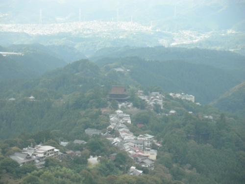 この「吉野の金峯山」のシリーズは、それも自然な流れであろう、かなり濃い内容になってしまった。それはやはり、御嶽山の「御嶽信仰」の故郷が、金峯山の山岳信仰にあって、その礎を形成した御方こそ、修験道の開祖「役行者(役小角)」だったからではないかと思われる。繰り返しとなるが、金峯山(きんぷせん)とは、奈良県の大峰山脈のうち吉野山から山上ヶ岳までの連峰の総称である。金峰山とも表記し、「金の御岳(かねのみたけ)」とも呼ばれる。 「役行者」は、その「金峯山(きんぷせん)」で修業されて、不惜身命の苦行の結果ついに「金剛蔵王権現」を感得、その御姿を山桜の木に彫刻して、山上ヶ岳と吉野山に御堂を建ててお祀りされたのが、山上山下の蔵王堂の起こりであり、吉野山の金峯山寺の始まりとされる。「上の画像」は、その吉野山の金峯山寺(画像の中央部)を、花矢倉展望台より映したものだ。次に「中の画像」は、その金峯山寺の境内より「蔵王堂」を撮影したものである。この「秋の旅」でも、今春の「春の旅」と同様に、「蔵王堂」の堂内を時間の許す限り拝観させていただいた。当初の感覚では、「吉野」での滞在が夕刻までになるとは考えてもみなかったが、いざ気が付いてみると、今にも沈みそうな夕日が葛城山系方面に輝いており、もう一泊を奈良市内で過ごすことにした。名残り惜しくも最後に、金峯山寺は「蔵王堂」の北に位置し、北面する「仁王門」を撮影したものが「下の画像」である。今回の「秋の旅」は、山岳信仰の「修験道」も深く絡む、霊峰「御嶽山」の登拝が主軸だっただけに、その修験道の開祖である「役行者」が感得された、「金剛蔵王権現」の薫香を追い求めての吉野行脚であったと感じたところである。