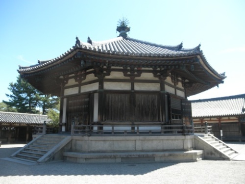 法隆寺境内の「大宝蔵殿」では、<世界文化遺産登録20周年記念>ということで、「法隆寺と法起寺の寺宝から」と題する展示会が開かれていた。・・・ここで「法隆寺」と「法起寺」とは・・・まさに私はこの二つの寺に、まるで導かれるように参詣することになったので、この二寺の寺宝を拝観するために来たのかもしれないと感じた次第。それを暗示するかのように展示会場には、お歳を召された解説員の方が、なぜか気軽に私に声をかけてきて、それから約1時間をかけて、広い会場に展示された寺宝に関して、懇切丁寧な解説を受けることになったのである。その数々の寺宝の中でも、とりわけ印象に残ったのは、あの有名な「玉虫厨子(たまむしのずし)」という仏殿のレプリカであった。先端技術によって、これが作られた当初の色彩に復元できたそうで、私はその仏殿に映える極彩色の美しさに目を瞠った。実は先ほどの「大宝蔵院」の展示会場で、古めいて色のくすんだ本物の「玉虫厨子」を拝観してきただけに、本物と複製のそれぞれが放つ色彩の、その雲泥の差ともいえる違いに、私はとても驚いたのを覚えている。また、その復元された「玉虫厨子」の前方に、二体の仏像があったのだが、その復元された仏像に施された色彩豊かで緻密な表現には、私も大いに感銘を受けて、会場に何十体も展示された古い仏像群も、それらが造られた当初の色彩で拝観してみたいと思った。さて上の画像は、「大宝蔵殿」の次に向かった東院伽藍の中心にある「夢殿」を撮影したものである。当日は本尊の秘仏「救世観音像」は公開されていなかったが、今回の参詣で初めて訪れることになった「夢殿」の、その八角形状の「八角円堂」という伽藍には、やはり幾何学的な魅力を感じたことは確かである。それはさておき、先日紹介した歴史研究家の久慈氏は、この法隆寺の境内地を中心施設とする「斑鳩京」に建造された寺院、すなわち斑鳩寺(原法隆寺・若草伽藍)・中宮寺(原中宮寺)・法起寺・法輪寺、さらに京都の広隆寺や大阪の四天王寺などの寺院は、すべてその本尊が「弥勒菩薩」であったと述べておられる。また久慈氏は、斑鳩京がシリウス信仰に基づく「聖方位(真南から東に約20度傾く方位)」の都であると主張し、「弥勒信仰」の斑鳩京の各寺院(上記の寺院)が「聖方位」、ないしはそれに近い傾きを示し、斑鳩京の主な宮殿、斑鳩宮・中宮・岡本宮などが「聖方位」を示し、斑鳩京の街路が「聖方位」で成り立ち、飛鳥京から斑鳩京を結ぶ太子道が「聖方位」の道であり、「藤ノ木古墳」や「見瀬丸山古墳」などの蘇我系の古墳の多くが、「聖方位」で造られていることを指摘されている。次に、ここでまた「法隆寺」の歴史に詳しい書籍を紹介し、以下に参考となる記事を抜粋しよう。◎書籍紹介『蘇我大王家と飛鳥』石渡信一郎 著・三一書房 刊・法隆寺(斑鳩寺・若草伽藍)は、通説では586年に用明天皇が自分の病気平癒を祈願して建立を発願したのを、天皇の死後、推古天皇と聖徳太子が遺命を受け継いで607年に完成させたとしている。・聖徳太子は用明天皇の虚像であり、推古は架空の女帝であるから、「用明天皇が発願し、推古天皇と聖徳太子が建立した」という、天武もしくは持統時代以降に刻まれた銘文は、用明天皇が法隆寺を創建したことを示唆している。・『古事記』序文には天武が、帝紀を書物として著し、旧辞を調べて正し、偽りを削り、実を定めるために、稗田阿礼に「帝皇の日嗣と先代の旧辞」を誦み習わせたとあるので、天武時代に、用明大王の虚像として大臣 蘇我馬子・聖徳太子の二人を作り、飛鳥寺は蘇我馬子が、四天王寺と法隆寺は聖徳太子がそれぞれ創建したことにしたとみられる。つまり天武は、聖徳太子追善ということにして法隆寺を再建し、祖父 用明の霊を弔ったと推定される。・光明皇后は、祖父の鎌足と父の不比等が用明系王統に対してなしたことが、藤原氏に対する用明の祟りを招いたと信じ、聖徳太子が用明の虚像であることを利用して、聖徳太子の怨霊を鎮めようとしたと考えられる。・そのために法隆寺を選んだのは、天武が法隆寺の創建者を聖徳太子としていたためであり、平城京の元興寺を選ばなかったのは、藤原氏の氏寺である興福寺があったので、興福寺のライバルであった元興寺に肩入れすることができなかったためとみられる。・不比等は、天武が創作した聖徳太子像を発展させ、『日本書紀』の聖徳太子を仏教を興隆させた超人にすることによって、用明大王が仏教を興隆させた史実を消し去ろうとした。・光明皇后は、このことや、不比等が石川刀子の嬪号を剥奪したこと、祖父の鎌足が用明大王の子孫を滅ぼしたことなどをよく知っていたために、用明の祟りを恐れ、表向きは聖徳太子の鎮魂ということで、用明の怨霊を鎮めようとしたのである。以上が、上に紹介した書籍の抜粋だが、この度の「法隆寺」の参詣によって、私にとっては真実