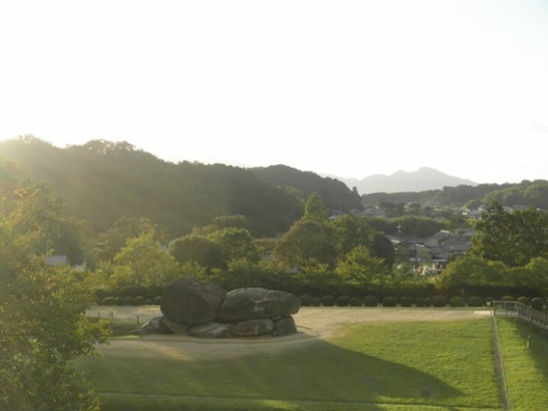 9月26日は、最終訪問地の「談山神社」への参拝を経て、西方の飛鳥方面に向かった。その過程で久しぶりに訪れた「石舞台古墳」を撮影したものが「上の画像」である。時間の関係で敷地内に入場できなかったが、その遠望を周囲を散策しながら撮影。画像の左側遠方には、金剛山地の北部に位置する「二上山」が見える。この「石舞台古墳」の被葬者は、蘇我氏の実力者であった「蘇我馬子」という説があるが、それを裏付けるものとして、石室の壁に「馬子墓」の文字が刻まれており、肉眼でも確認可能とのことだ。※「中の画像」は、上の古墳を撮影した場所近くの、美しき夕日の輝きに染まる黄金の稲穂である。さて、思えば「大化の改新(乙巳の変)」は、蘇我氏と中臣(藤原)氏の確執、あるいは天武天皇系と天智天皇系の相克のクライマックスとも認識でき、その後の奈良・平安時代は、藤原氏の天下となっていく。そうえいば、ごく最近になって、この「蘇我氏」を象徴するキーワードが「豊(とよ)」と知る。このことは、今の私にとっては重要な知見で、今年の「春の旅」でも「秋の旅」でも、奈良方面では「聖武天皇」を意識する旅路となったわけだが、この聖武天皇の尊号は「天璽国押開豊桜彦天皇」と「豊」の字が入るので、上の知見により・・・なるほど、聖武天皇は「藤原氏」の系統ではあるが、やはり「蘇我氏」の系統の御方でもある・・・と感じた次第である。また「聖武天皇」は、蘇我氏の系統と目される「天武天皇」を慕ったという捉え方もある。その気脈もあったであろうか・・・この「秋の旅」では、「壬申の乱(AD672年)」の際の、大海人皇子(後の天武天皇)の陣地「桃配山」を訪ねることになったのも、ただならぬお導きを感じたところである。(☆関連記事⇒ リンク)加えて近年、歴史研究家の間で、”天武天皇系”と”天智天皇系”の相克関係を象徴する例として取り上げられるのが、京都「泉涌寺」に奉安されている「歴代天皇の位牌」の件である。つまり、元は京都御所にあった歴代天皇の位牌が、明治6年に京都「泉涌寺」の「霊明殿」に移され奉安されているが、その中に、なぜか”天武天皇系”の系譜である〔天武・持統・文武・元明・元正・聖武・孝謙(称徳)〕の位牌が存在しないという事実で、この件もあらゆる意味で示唆的といえよう。いずれにしても今、おそらくは蘇我馬子を被葬者とする剥き出しの「石舞台古墳」の画像を前にして、また直前まで談山神社の境内にある藤原鎌足の墓所を参詣していたことも思い出し、往時の大きな「歴史のうねり」のようなものを感じる今日この頃である。日も暮れかけていたが、「飛鳥」に寄れたということで、かねてより機会があれば見たいと思っていた「亀石」を訪ねてみた。そのユーモラスな石像を映したものが「下の画像」である。ある歴史研究家の話によると、この「亀石」は、亀が蓬莱山などの仙山を負うという神仙思想により設置されたと考えられるとのことだ。駐車場に戻って少し休んでいると、あっという間に周囲は暗くなり、奈良にもう一泊(三連泊)することにした。ホテルに向かう道中で、今回の旅路を反芻していると、この「秋の旅」は「剣(つるぎ)」がキーワードだったことを思い出した。そして、「木曾の御嶽山」の山頂で展望した周囲の山々の頂の名称に、富士山の「剣ヶ峰」をはじめとして、立山連峰の「剣岳」や白山連峰の「剣ヶ峰」など、「剣」の名の付いた名峰が多かったことを走馬灯のように思い出し、旅路の最後は《四国の霊峰「剣山(つるぎさん・標高 1955m)」》で締めくくることにした。