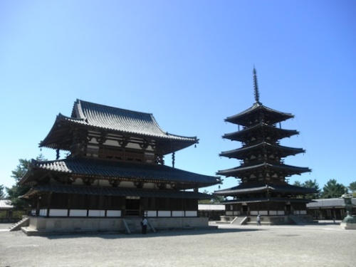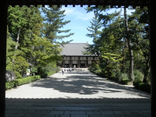 「平城遷都1300年」以降、奈良の滞在も三度目となるが、9月26日(木)は丸一日をかけて、今まで訪問できずにいた「唐招提寺」・「長谷寺」・「談山神社」の3つの社寺を参詣(参拝)することになった。そこで「上の画像」は、その最初に訪れた「唐招提寺」の玄関から撮影したものである。結果的には玄関の門構えが額縁となり、参道の影の位置も加わって、なかなか素敵な構図となった。次に「中の画像」は、しばらく参道を歩いて、国宝「金堂」の全体像を撮影したものだ。759年に創建以来の天平金堂、その威風堂々とした佇まいは、普遍的な魅力を漂わせていた。この「唐招提寺」は、753年に中国より来朝された「鑑真和上」が、戒律の専修道場として創建されたお寺である。「鑑真和上」は、来日を果たされた翌年の754年、東大寺大仏殿の前に戒壇を築き、聖武太上天皇をはじめとして四百余人の僧俗に戒を授けられ、これは日本初の正式受戒だったとのこと。その後、鑑真和上は東大寺で五年を過ごされた後に、758年「大和上」の称号を賜われた。思えば「春の旅」では、第45代「聖武天皇」に想いを馳せての旅路だったこともあり、この度の「秋の旅」で初めて「唐招提寺」への参詣、そして「鑑真和上」の御廟に額づくことができ、真に有り難き時間を過ごすことができた。☆関連記事・2013年03月30日 「春」の旅日記(6)⇒ リンクそして「下の画像」は、同じ境内の国宝「講堂」を、「金堂」の右横から撮影したものだ。「講堂」の本尊は「弥勒如来坐像」(重要文化財)であり、この像を前にした私は鳥肌が立った。それは、「弥勒菩薩像」については、国宝第一号の広隆寺の像をはじめとして何体も見てきたが、「弥勒如来像」を意識して拝観したのは、おそらく初めてだったこともあるであろう。しかし、それはやはり、今回の「秋の旅」が前回の「春の旅」を含めて、結果として「弥勒(ミロク)」≒「シリウス」の祭祀現場を訪ねる旅だったので、その「如来」として象られた弥勒像に、「シリウス」の輝きを垣間見て感動したのである。当寺の由来に記された国宝「講堂」の項には・・・本尊「弥勒如来坐像」は釈迦牟尼仏の後継で、将来必ず「如来」として出現し法を説くとされる。弥勒像といえば、通常は「菩薩像」だが本像は「如来像」として表現され、国宝「金堂」の三尊と合わせて顕教四仏となる古式で配置されている・・・とあった。36段階あるとされる「菩薩」の修業段階を終えた「弥勒(ミロク)」は、既に「如来」の位階にあって、もしかすると「弥勒如来」として出現し、法を説く時期が到来したのかもしれない。その説法の際のキーワードは、おそらく「シリウス」なのでは・・・と感じる今日この頃である。