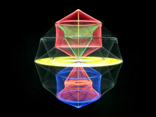 私にとって平成25年(2013年)という一年は、思い出に残る出来事が本当に沢山あった年である。まず「立体造形」の分野では、年始の1月には福岡県北九州市にて合同展示会「近現代美術展」に参加(2週間)したこと、そして6月の夏至の頃には地元の山口県山口市にて個展「星のカタチと宇宙感」を開催(8日間)したことである。また「歴史探訪」の分野では、3月中に約2週間の「春の旅」と9月中に約2週間の「秋の旅」と、共に車で一人旅に出て、一度は行ってみたかった歴史の現場を殆ど訪ねることができた。それにしても、私自身がこれほど大きく活動したことは例年にないので、やはりその背景には5月の「出雲大社の御遷宮」と10月の「伊勢神宮の御遷宮」と、この日本における二つの大きな神道祭祀が関係していたと感じるところだ。そして「出逢い」といえば、今年は古史古伝『カタカムナ』が伝える「ウタヒ」の「48音」を実践活用される御方との再会、この年末には同じく古史古伝『ホツマツタヱ』が伝える「あわ歌」の「48音」を実践活用される御方との新たな出逢いがあり、この二つの「48音」からなる御歌を・・・自分のものすべし・・・との直感を得たのは、これも必然的な成り行きだと思われた。以上に列記したように、この一見すれば相反するように思える「陰」と「陽」の、その2つの要素を如何にバランスよく「和合」することができるか・・・そのためには、その「和合」の前提にあるはずの「太極」の世界を、どのように認識すればいいのか・・・などという模索を経て、私としては結果的に平面図形の「陰陽太極図」を三次元の立体として組み上げることができないものかと、その具現化を試みることになった次第である。そして、その「太極図」を象徴する立体構造は、奇しくも意外に早く具現化できたわけだが、気付いてみるとその造形は、既に数年前に完成を見ていたものであり、ということはつまり、その図形の原点たる本質的構造を、この期に及んで再確認する必要があったということになろうか・・・。どうやら来年は、その『しくみ』と題した「太極図」の立体版を基盤としつつ、理想とする普遍的な「陰陽和合」に向けて、私なりに実践的な活動を展開していく気配を感じた年の瀬である。