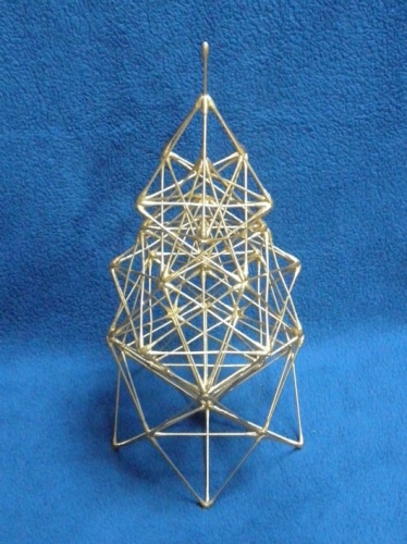 今から約2000年前は、地球の歳差運動により、北半球でも「南十字星」がよく見えていた。例年の12月22日頃となる「冬至」は、一年で最も日照時間の短い日であり、往時の人はその冬至日を「太陽」が死んだ日ととらえ、磔にされて死んだとされる「イエス・キリスト」を「冬至の太陽」に擬えていたようである。その「冬至」から3日間(12月22・23・24日)は、太陽の南下が目測上は止まったように見えて、「南十字星」が輝く位置と「太陽」の南中高度が重なる期間でもあった。つまり、言わば「死んだキリスト(冬至の太陽)」から3日間が、12月25日の「キリストの復活」までの、「十字架(南十字星)」に磔にされた期間と考えられてきたわけである。そして冬至から、少しずつ日照時間が長くなっていき、ほんの少し太陽が北上をしはじめた初日の12月25日を「復活した太陽」、すなわち「復活したキリスト」ということで、「クリスマス(イエス・キリストの誕生を祝う祭)」の祝日となったということだ。このように考えると、いわゆる「十字架に磔にされたキリスト像」とは、冬至の頃の天体運行・・・まるで「南十字星」に重なるように見える冬至から3日間の「太陽」・・・が背景にあって、それがシンボライズされた造形に観えてくるというわけだ。そこで12月24日のクリスマス・イブを経た翌25日の、「キリストの復活」に纏わる天体運行について、ここで少し詳しく解説してみよう。12月25日は早朝の夜明けの晩は、オリオン座の「三ツ星」の後方に、大犬座の「シリウス」が東方の夜空に昇り、その「三ツ星」と「シリウス」がほぼ直線に並んだその下方に、地平線(水平線)から「キリストの復活」を意味する「太陽の日の出」を迎えて、メリー・クリスマスとなるわけである。そのようにして、「南十字星」に寄り添う期間の過ぎた12月25日の日の出より、「太陽」が昇る位置は再び上昇し始め、また日照時間が少しづつ長くなっていくということだ。(※ 驚くことなかれ・・・この「12月25日」を聖日とする信仰はキリスト教に限らず、BC3500年頃→古代エジプトの「ホルス」、BC1200年頃→ペルシャの「ミトラ」、BC900年頃→インドの「クリシュナ」など、その他多くの宗教において、この《救世主誕生》の似たようなストーリーを持っているということである。)さて今日の画像は、今年の12月22日(冬至)の、その早朝の午前3時頃から作り始め、冬至の日の出に間に合わせるかのように制作した造形を撮影したものである。「剣」の剣先とも見立てられるこの造形は、今年の「春分」や「秋分」を含む「春・秋の旅」や、「夏至」の時期に開催した立体造形展など、平成25年度における私の制作活動の集大成として、この「冬至」に結実したという実感がある。この時期であれば「クリスマス・ツリー」を象徴的に顕わしたとも言える造形だが、そのように思ったとたんに、私の心中に冬至の夜空を彩る星々が映ってきたのは不思議であった。その星々とは、「冬の星座」の代表たる「おうし座(スバル・アルデバランなど)」と「オリオン座(三ツ星など)」、そして「大犬座(シリウスなど)」の星々であり、その造形を形成する各結合部がそれぞれを象徴する「星」として、その秘められし輝きを放っているように観えるのだった。それはあたかも、本日の「クリスマス」での披露を待ち望んでいたかのように、美しく瞬いている。