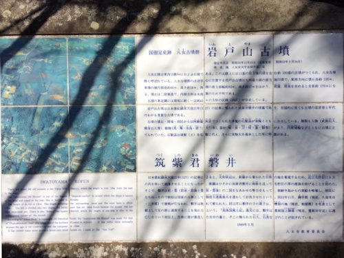 11月26日(火)の正午頃、国指定史跡の「岩戸山古墳」(八女市吉田)に到着、まずは隣接する「岩戸山歴史資料館」を訪ねた。館内では事務員の方が各種の展示物を懇切丁寧に解説してくださった。人物や動物などを模した石製の大きな「石人石馬」など、あまり近畿方面の古墳では見られない珍しい出土物に目を瞠った。同古墳は北部九州最大の前方後円墳で、6世紀後半に筑後地方を拠点に勢力を誇った豪族、「筑紫君 磐井」が生前に築いたと伝えられ、全国的に見ても古墳の造営者と年代のわかる貴重な古墳とされている。「磐井」は527年、大和朝廷の朝鮮半島施策に異を唱え、九州の他の豪族と手を組んで朝廷の大軍を迎え撃ち、1年余りの戦いの末に敗れた「磐井の乱」で知られる。しかし、勝った朝廷側の視点で描かれた「記・紀」では、朝廷の施策を阻む「反逆者」とされた「磐井」だが、地方の歴史などを記した「筑後国風土記」逸文からは、違う磐井像が浮かぶとのことである。つまり九州支配を強めて、地元民に過大な負担を強いる朝廷に反旗を翻し、地元民を救おうとした人物として、現在も「磐井」は郷土の「伝説的英雄」として親しまれているそうだ。実は私自身、この「磐井の乱」については殆ど調べたことがなく、今回初めて「磐井」の築造した「岩戸山古墳」を訪れたことで、その隠された北部九州の歴史に踏み込むことになった。この「磐井の乱」については、多くの歴史研究家が論考を述べており、興味深く各論を読んでいるところだが、今の私なりの捉え方は、近畿王朝(大和国)の「継体」率いる軍隊による、九州王朝(倭国)の「簒奪」という構図ではないかということである。つまり当時の日本において、本家本元の王朝であった「九州王朝」を奪うことで、当時はまだ地方王朝の国王であった「継体」が、その王権を拡大強化しようとしたのでは・・・ということだ。おそらく、「反乱」は近畿王朝の大和国王「継体」率いる軍隊の所業であり、継体軍の用意周到な奇襲攻撃によって、「倭の五王」に続く九州王朝の倭国王「磐井」が追い遣られた戦いだったのではあるまいか・・・などと、今のところは私なりに、そのような捉え方をしているところだ。なお、ウィキペディアには「磐井の乱」に関する異説として、「磐井」を九州王朝(倭国)の王と見る「九州王朝説」があることを取り上げ、日本書紀の内容は九州王朝の記録からの盗用であるとしており、参考記事として以下の2点を挙げている。◎百済本紀には『531年に日本の天皇及び太子・皇子倶に崩薨せぬ』という記事がある。「磐井の乱」について百済では、日本の天皇である磐井一族が滅ぼされたと認識していた。◎福岡県八女郡の「筑紫君磐井」の墳墓(岩戸山古墳)には、衙頭(がとう)と呼ばれる祭政を行う場所や解部(ときべ)と呼ばれる裁判官の石像がある。これは九州に律令があったことを示すもので、九州に王朝があった証拠である。つづく