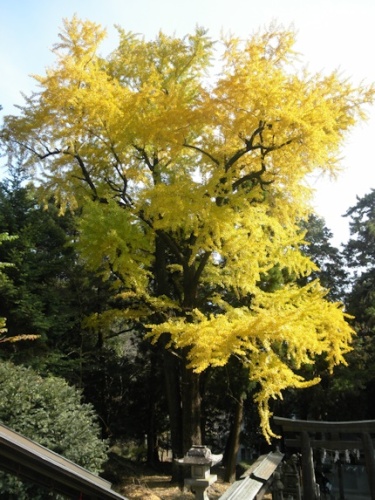 11月23日から一泊二日の北九州歴史探訪・・・二日目の24日は、鞍手の「熱田神社」への参拝から始まった。剣岳(125m)の西麓の新北に鎮座する熱田神社は、元は剣神社であり、のちに尾張の熱田大明神を勧請したとされている。実は参拝時に、当神社の宮司家から頂いた資料があった。それは、当神社に伝わる古文書の一部を引用して解説した文章で、「磐井の乱」と鞍橋君(くらじのきみ)と題するものだった。その資料によると、この宮司家の先祖が筑紫国造「鞍橋君」とのことで、大和朝廷に対する反乱とされる「磐井の乱(AD527年)」は筑紫君「磐井(いわい)」によって起こされ、その磐井の息子二人の次男が「鞍橋君」と系図は伝えているそうだ。日本書紀では「磐井」は反逆者とされ、その息子の「鞍橋君」は筑紫国造と記されており、なぜ反逆者の息子が反乱の咎めを受けずに筑紫国造となれたのか・・・と、その資料には疑問を呈されていた。※この頂いた資料も契機となったであろう・・・この2日後には上記の「筑紫君磐井」が築造した「岩戸山古墳」(北部九州最大の前方後円墳・福岡県八女市)を訪ねることになったのである。神妙な心地で熱田神社を参拝の後、一行は当神社の裏山である「剣岳」の山頂へ車で向かった。山頂には剣岳(125m)の東麓に鎮座する「八剣神社」の奥宮があり、この奥宮で参拝を済ませた頃の私の脳裏には、『剣』がキーワードだった今秋の「秋の旅」との関連が渦巻いていた。そして麓の「八剣神社」に参拝、その際に境内で撮影した大きな銀杏の木が今日の画像である。当神社の祭神は、昨日参拝した木月の剣神社と同じく「須佐之男命」「日本武尊」「宮須姫命」の三柱であり、先ほど参拝した「熱田神社」の祭神にも含まれていた。繰り返しとなるが、この神社の三柱の祭神に共通のもの、それは三種神器の「草薙の剣」である。ここまできて感じたのは、今でこそ名古屋の熱田神宮の祭神は「熱田大神」とされ、「草薙の剣」を神体とする「天照大神」を指すとしてあるのだが、やはり上記の「草薙の剣」を受け継いできた三柱神が相応しいということであった。今秋の「秋の旅」にて名古屋の熱田神宮を参拝し、その由緒を読んだ時に感じた強い違和感が、ここ「鞍手」において「須佐之男命」「日本武尊」「宮須姫命」の三柱を祭神として祀る『剣』に纏わる神社を数社巡ることで・・・これぞ、しかり!・・・と治まったのは不思議である。☆関連記事・2013年10月26日「秋」の旅日記(26)⇒ リンクその後も、鞍手は新延の「剣神社」を参拝し、すぐ近くの「鎧塚古墳」を散策、最後は遠賀川流域で最大規模とされる新延の「大塚古墳」を訪れて、今回の北九州の歴史探訪は終焉した。この二日目の24日は、まさに『剣』づくしの神社巡りとなり、私的に今感じるのは、この「鞍手」地区に鎮座する『剣』に纏わる神社群の配置は、「天体の地上投影」という観点から、おそらく「おうし座」に属する星々が投影されたものではないかということ。この歴史探訪(1)において、初日に参拝した「宗像神社」と「八所宮」を、「シリウス」と「オリオン座」の地上投影と観たことを記したが、その見立ての連続性からしても、多くの剣系神社が鎮座する「鞍手」は、今の私には「おうし座」が投影された地所に観えるというわけだ。そういえば「宗像の三女神」は、「須佐之男命」の所持する『剣』から生まれたとされていることから、今回の「宗像」から「鞍手」にかけての歴史探訪は、まさしく『剣』をキーワードとする旅路だったということになり、今秋の「秋の旅」との連続性を強く実感する今日この頃である。さて、24日は午後5時頃の解散となったが、連日の濃厚な神社・旧跡巡りに加えて、昨夜はほとんど眠れなかったこともあり、帰りの車中で強い睡魔に襲われたため、北九州市内のホテルに急遽宿泊することにした。それによって後日、思わぬ展開になるのだが、それはまた次回のブログにて。