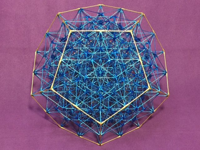 あれから何年を経ただろう・・・かつて「龍神まつり」の御縁で、ある禅寺に奉納させていただいた造形があった。つい先日お寺を訪ねた際に、その造形が少し崩れかけていたので自宅に持ち帰り、これを修繕することになった。おそらく参詣された多くの方々が手にされたのであろう・・・造形の外側の枠組みについては、素材が素材だけに傷んでいたのだが、その内部構造に関しては問題なく不動の安定性を保っていたのは、制作者として嬉しかった。そこで冒頭の画像は、数日をかけて修繕が完了した際に、その美しく蘇った造形を撮影したものだ。全体としては「正12面体」の軸線構成による構造体であり、かねてより「正12面体」については、密教の伝える「五大(地・水・火・風・空)」の中の『 空(くう)』を意味する立体だと、自分なりに認識してきた。それが不思議なことと言うべきか、上記の『空』にも連関してであろう、この造形を修繕する過程で私の心中に『 空即是色 』(くうそくぜしき)と浮かんできたことから、そのままこの造形の題号として詠うことにした次第である。今の私なりの感覚だと、この『 空即是色 』の「空」とは「意識(心)」、そして「色」は「物質(物)」のことであり、一般的に「意識(空)」と「物質(色)」は別のものであって相反するもののように思われがちだが、本来は「表裏一体」であり元々「ひとつ」という意味合いなのだと思う。※関連記事・・・「正12面体の普遍的構造」⇒ リンク※関連記事・・・[ 12 ]の解読!? ⇒ リンク※関連記事・・・「正12面体の宇宙論」⇒ リンク