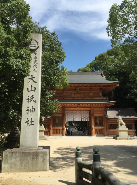 そして、いよいよ「大山積神」を主祭神として祀る伊予国一宮「大山祗神社」に参拝。そこで冒頭の画像は御神前の社標と立派な楼門、そして下の画像は当社の由緒が記された看板を、それぞれ撮影したものだ。この由緒にあるように、主祭神の大山積神は天照大神の兄神にあたるとされ、伊予国一宮は全国の大山祗神社・三島神社の総本社とされている。それが、ごく最近になって再度この由緒を見ていたとき、天照大神の兄神にあたる「大山積神」の正体は女神「瀬織津姫命(セオリツヒメ)」、そして大山積神の妹神にあたる「天照大神」の正体は男神「饒速日命(ニギハヤヒ)」と観えてきたから不思議である。なるほど・・・「古事記」・「日本書紀」以前の古文献とされる「ホツマツタヱ」には、「ニギハヤヒ」と「セオリツヒメ」は夫婦神と記されているので、この古文献に少しでも親しんだことのある人であれば、上記の二柱神の対応関係については、およそ察しがつくことであろう。今の私には・・・男神「ニギハヤヒ」を女神「天照大神」とし、この神名を「伊勢神宮(内宮)」の主祭神として祀り、女神「セオリツヒメ」を男神「大山積神」とし、この神名を「大山祇神社」の主祭神として祀る・・・という構想が「日本書紀」の編纂期に策定され、「日本書紀」の成立までに両社で祭祀斎行されたのではないかと、そのように感じられる。上の画像は、大山祗神社の境内にある天然記念物の大楠を映したもので、樹齢2600年と伝わる御神木である。往古よりこの老木は、御神前を往来する参拝者の様子を、つぶさに見守ってきたことであろう。そして、この連作の最後を飾る画像は、前回の日記でも掲載した「入日の瀧」の美しき一コマ。まるで太陽から雨が降ってきているかのような光景は、これまで約1300年に渡り引き離されてきた「ニギハヤヒ」と「セオリツヒメ」が、まるで《ひとつ》になったかのようにも観えてくる。(了)