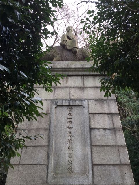 お日柄もよろしく12月3日の「ひふみ」の月日に、九州の北方にある要の山たる「足立山(標高597.8m/北九州市小倉北区)」へ登る機会を得た。足立山は、今回で二回目の登山となる。☆関連記事・・・小倉の「足立山」に登る(1)この山麓には、北辰(北極星)を主祭神として祀る妙見神社が鎮座し、昔から九州全体の「北」を統括する山として認識されてきたことがうかがえる。上の関連記事にも書いたが、この神社は奈良~平安時代に活躍した和気清麻呂公が創祀したことで有名である。その創祀の由来に、769年に起きた「道鏡事件」の際に、清麻呂公と宇佐神宮との関わりが以下のように記されている。・・・船が豊前国宇佐の海岸に着いたとき、道鏡の追手から逃れるが如く、多くの猪が清麻呂公をかばい、その一頭が公を背に乗せて宇佐神宮の社頭へとお送りしました。・・・以上の由来等を参考に作られた「猪に乗る和気清麻呂公」の石像が冒頭の画像で、この下の画像がその石像を背後から映したものである。この石像は、足立山に登る山道の入口にあり、現地でフト石像に刻まれた公の顔を見上げると、どこか遠くを見遣っているようである。そこで公の顔が見遣る方位が気になったので調べてみると、やはりというべきか・・・「猪」だけに「亥(北北西)」の方位・・・であったのには驚いた。つまり、この「亥」の方位を反転した後ろの正面は「巳(南南東)」と、およその「シリウス方位(真南から東に約20°)」となるので、「宇佐神宮に纏わる祭祀線(※追伸)」と最近の一連の記事との深い関係を見い出せたというわけである。加えて、この「足立山」と先日の11月末に登った「尾鈴山」を結ぶ方位線が「シリウス方位」だったことを事前に意識していたこともあり、この入山時の「明確な示唆」に感慨一入の心境になるのであった。《 追 伸 》上記の「宇佐神宮に纏わる祭祀線」とは、豊前国一宮の「宇佐神宮」とその神体山である「御許山」を結ぶ方位線のことであり、これが言わば「亥」と「巳」の方位を結ぶ「シリウス方位」を示すことになる。ということはつまり、毎年の冬至の頃に宇佐神宮にて斎行されていたであろう真夜中の儀式として、神宮から見てシリウス方位にある「御許山」の山上より昇る天体「シリウス」を特別に拝していたと推察され、そこに古来より宇佐嶋に降臨されたと伝わる「比売大神」の本質を垣間見る思いがするのである。