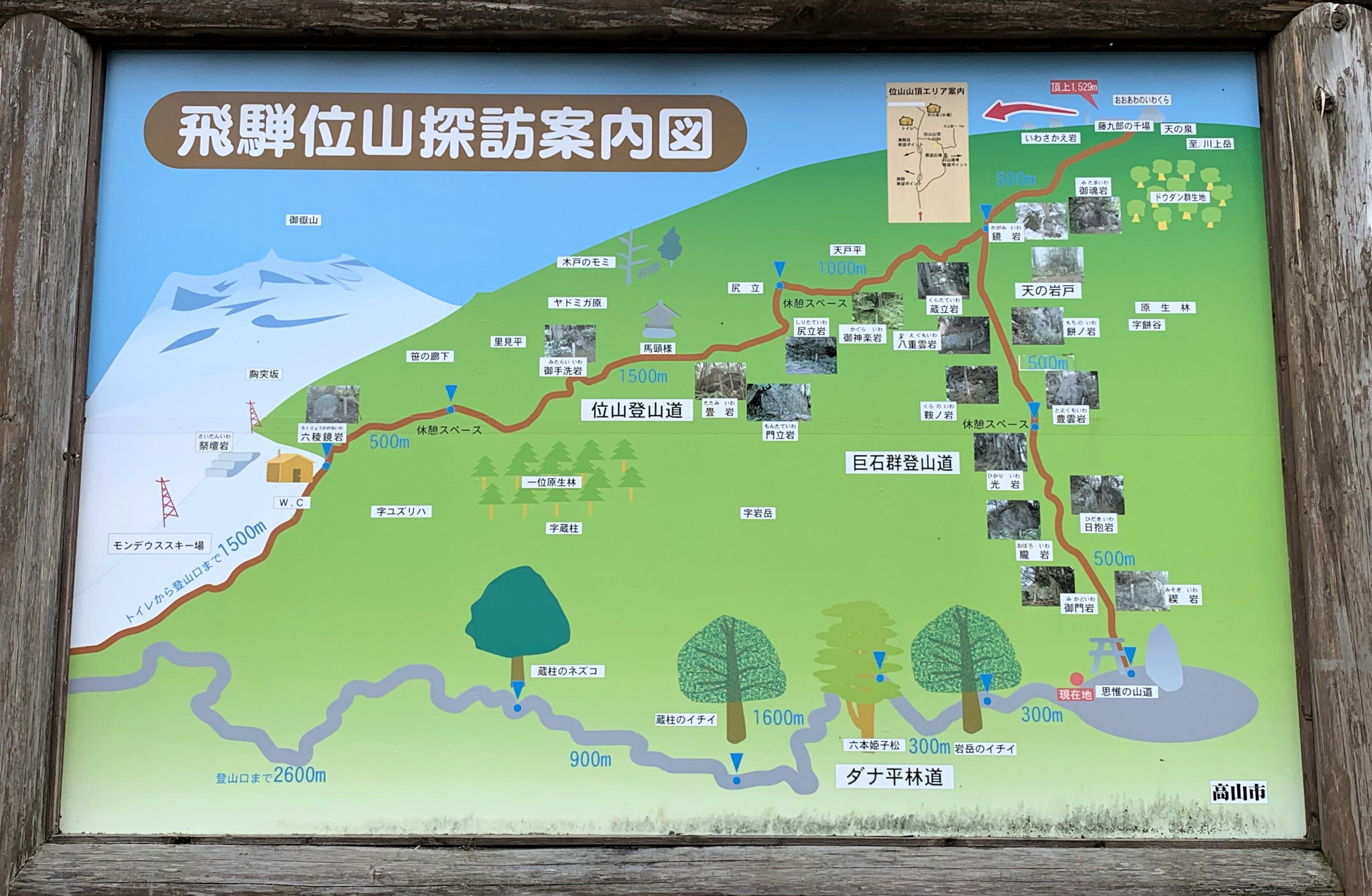 翌10月24日は曇りがちの日和ではあったが、飛騨高地の中央に位置する「位山(くらいやま:標高 1,529m 岐阜県高山市)」に予定通り登ることにした。そこで冒頭の画像は、その「位山」の登山口となるダナ平林道の終点(標高 1,320m)から、槍ヶ岳(やりがたけ:標高 3,180m/画像の中央に見える尖った山)方面を展望したものである。薄曇りの天候のなか、飛騨山脈の少し雪を被った稜線がハッキリと見え、素晴らしい景観であった。上の画像は、山頂に向かう「巨石群登山道」の登山口を撮影したものである。個人的には今回で三度目の登拝となるが、身の引き締まる思いがした。この飛騨の中央に位置する「位山」は、下の画像の解説版に記されているように、この山系から発する川が、北方の日本海側と南方の太平洋側へと分かれて流れる「分水嶺」となっている。「位山」には、岐阜県の県木である「イチイ」の原生林がある。そこで下の画像は、登山の道中で見かけた「イチイ」の木を撮影したものだ。その木の葉は、まるで「シダ植物」のような葉付きで、実に繊細で美しかったことを憶えている。この位山(くらいやま)の名前の由来については、朝廷に位山の「イチイ」を「笏(しゃく)」の材料として献上した際、この木が「一位(いちい)」の官位を賜ったことから、「木はイチイ、山は位山」と呼ばれるようになったという説があり、現在でも天皇の即位に際して位山のイチイの笏が献上されている。そして下に掲げた2枚の画像は、「位山」の登山前に参拝した 飛騨国一之宮「水無(みなし)神社」の神殿を含む広い境内と、その由緒書を撮影したものだ。この霊峰位山は「水無神社」の神体山である。次の日記では、「巨石群登山道」を登る道すがらに座す、存在感あふれる「磐座」の数々を紹介しよう。