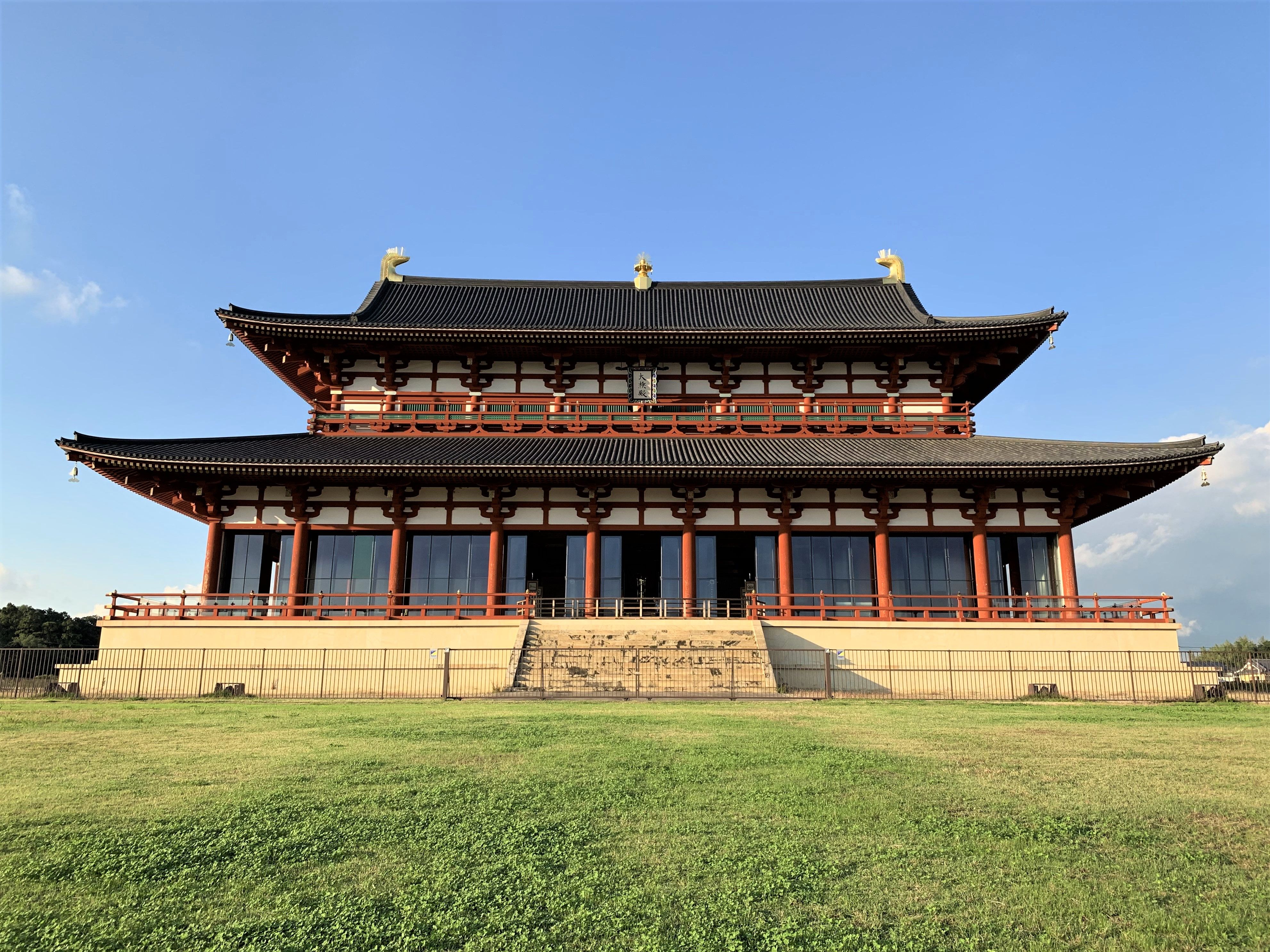 そして近年、粛々と復元事業が進行中の特別史跡「平城宮跡」を計画地とした国営の「平城宮跡歴史公園」を訪ねた。そこで冒頭を含む上から三枚の画像は、西暦724年(神亀元年)に 第45代「聖武天皇」の即位式が行われた「大極殿」(2010年に復原)を含む「第一次大極殿院」を撮影したものである。平城宮跡の北方に位置する「第一次大極殿院」は、この「大極殿」を含む南北約320m・東西約180mの区間に建造された古代の宮都における中心施設であり、天皇の即位や外国使節との謁見など国家の重要な儀式が行われた場所とされている。◎関連サイト・・・国営「平城宮跡歴史公園」そういえば、かつて「平城遷都1300年祭」ということで、復元されたばかりの「大極殿」を見学しようと、この「平城宮跡」を訪れたことがあった。その際に書いた日記が以下のリンクである。※関連記事・・・平城遷都1300年祭へ・・・さて上に並ぶ五枚の画像は、復元された「大極殿」の中央に置かれた「高御座(たかみくら)」(実物大の模型)を、様々な角度から撮影したものである。この「高御座」は、奈良時代から「天皇の即位」に関する重要な儀式などで用いられてきたとされている。場内の解説員の話によると、古式に則り復元された(画像に映る)「高御座」は、この度の「令和」の即位式で使用された「高御座」と比べると、「つくり」に多少の違いがあるということであった。その「多少の違い」を私なりに解説すると、そもそも「高御座」の構造は上から見て八角形状なので周囲に八つの側面があるわけだが、画像の「高御座」については前方と後方の二つの側面が帳(とばり…室内と室外を区切るために垂れ下げる布)で開閉でき、残りの六つの側面は面材で塞がれているのだが、この度の即位式で使用された「高御座」については八つの側面が全て帳(とばり)で開閉できるようになっているということである。加えて解説員の話で印象に残ったのは、前回の日記で取り上げた「東大寺」という名称の由来であった。その歴史に造詣の深い年配の解説員は、「大極殿」前方の回廊より実際に「東大寺」が見える東方を指さして・・・「東大寺」の寺院名は本来「金光明四天王護国之寺(きんこうみょうしてんのうごこくのてら)」と申しますが、この「大極殿」(中央)の〔東にある大きな寺〕なので、後に「東大寺」と言われるようになったのです・・・と話したのであった。まさに歴史の現場で聞いた解説だけに、単純明快にして実に説得力のある話であった。すると、夕方になるにつれ青空が広がってきたので、奈良盆地を一望できる「若草山」の山上で夕暮れを見ようと車を走らせた。そこで上の画像は、夕日が沈んだ直後に展望した「奈良」の、清々しい景観を撮影したものである。この「若草山(標高 342m)」は、面積33ヘクタールの芝生に覆われた山で、山頂には5世紀頃に築造されたといわれる史跡 鶯塚古墳(うぐいすづかこふん)がある。標高300m以上の山頂にある古墳としては、日本で最大級の「前方後円墳(全長103m)」ということだ。『枕草子』に登場する鶯陵はここともいわれ、「鶯陵」の石碑が立つ後円部を撮影した画像が上である。そして、下の画像に映る「若草山から望む奈良市街の夜景」は、「新日本三大夜景」に選定されているとのことである。