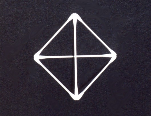 さて、今日の画像は、あらゆる「立体」の根元の形である「正四面体」の軸線構成を、ある角度から映した写真だ。(6本の綿棒で構成した造形)