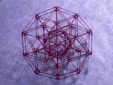 今日の画像は、その紫蘇色に染まる「立体菊花紋」を映したものである。8月下旬の旅行会から帰ってきて、なぜかこの「立体菊花紋」と命名した「菱形30面体」の軸線構成を、「濃い紫」に染めてみたくなったのだ。