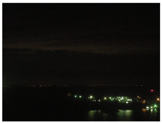 画像には、手前の明かりの向こうに、横一筋の薄明かりが確認できるわけだが、その薄明かりが、この地より海を挟んで約50キロメートル遠方の隣国、韓国は釜山の方面を映したものだ。