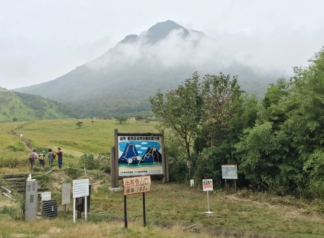そして最後となる下の画像は、上記の狭霧台展望所からも近い標高780mの「中央登山口」より、由布岳を展望した画像である。