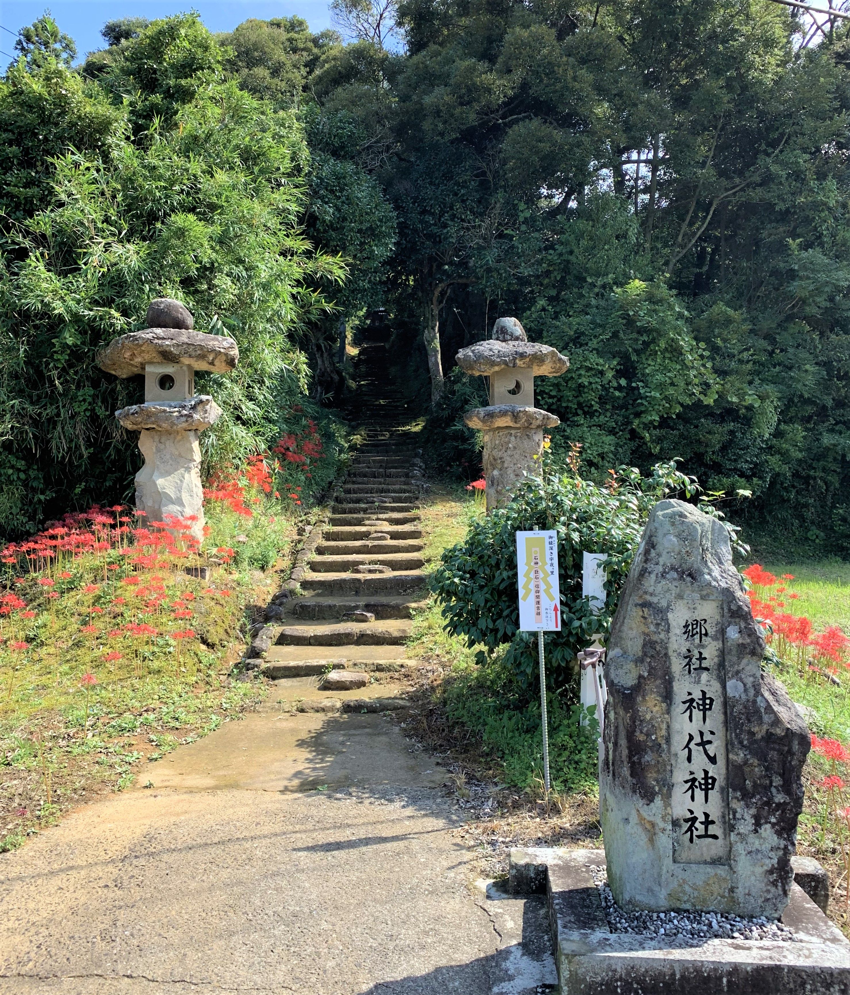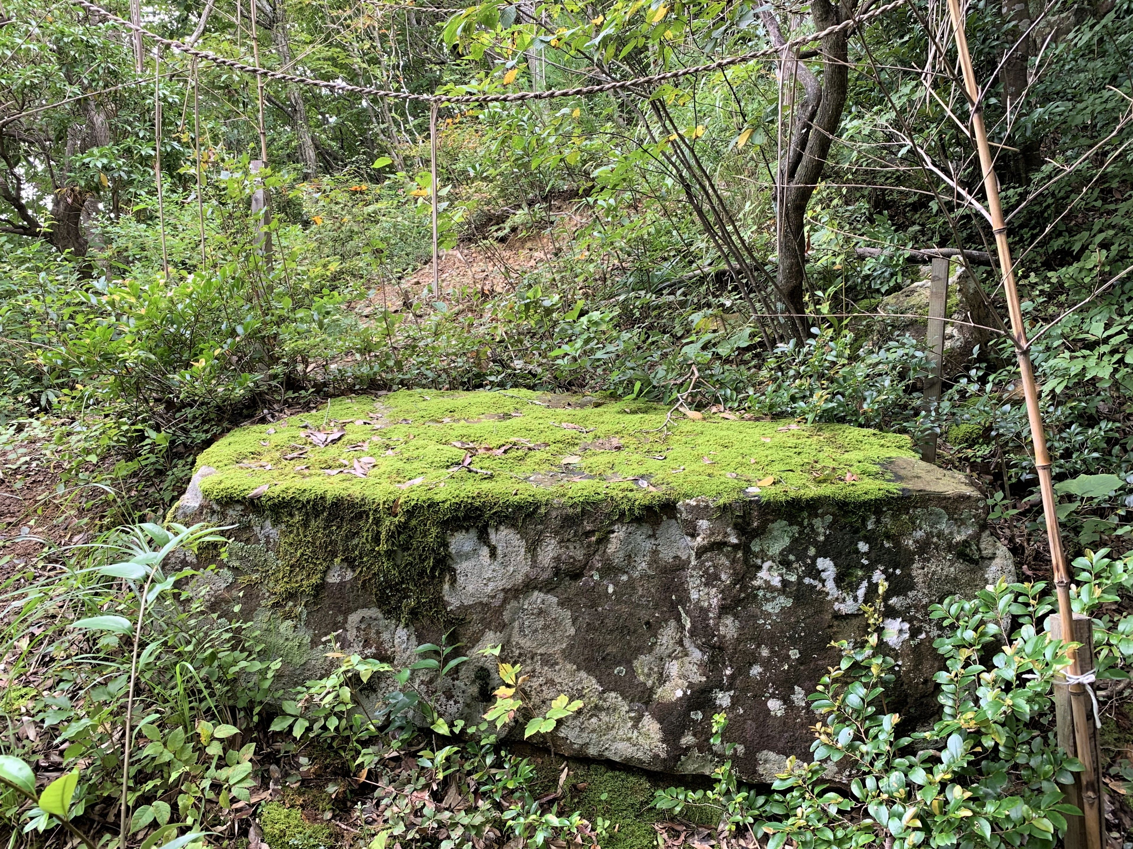 実は、この神社から磐座に向かう道中の一角に、丸い大きな石が置かれていたのだが、帰宅して改めてこの「神代神社」を調べてみると、その石には《 神代社旧跡