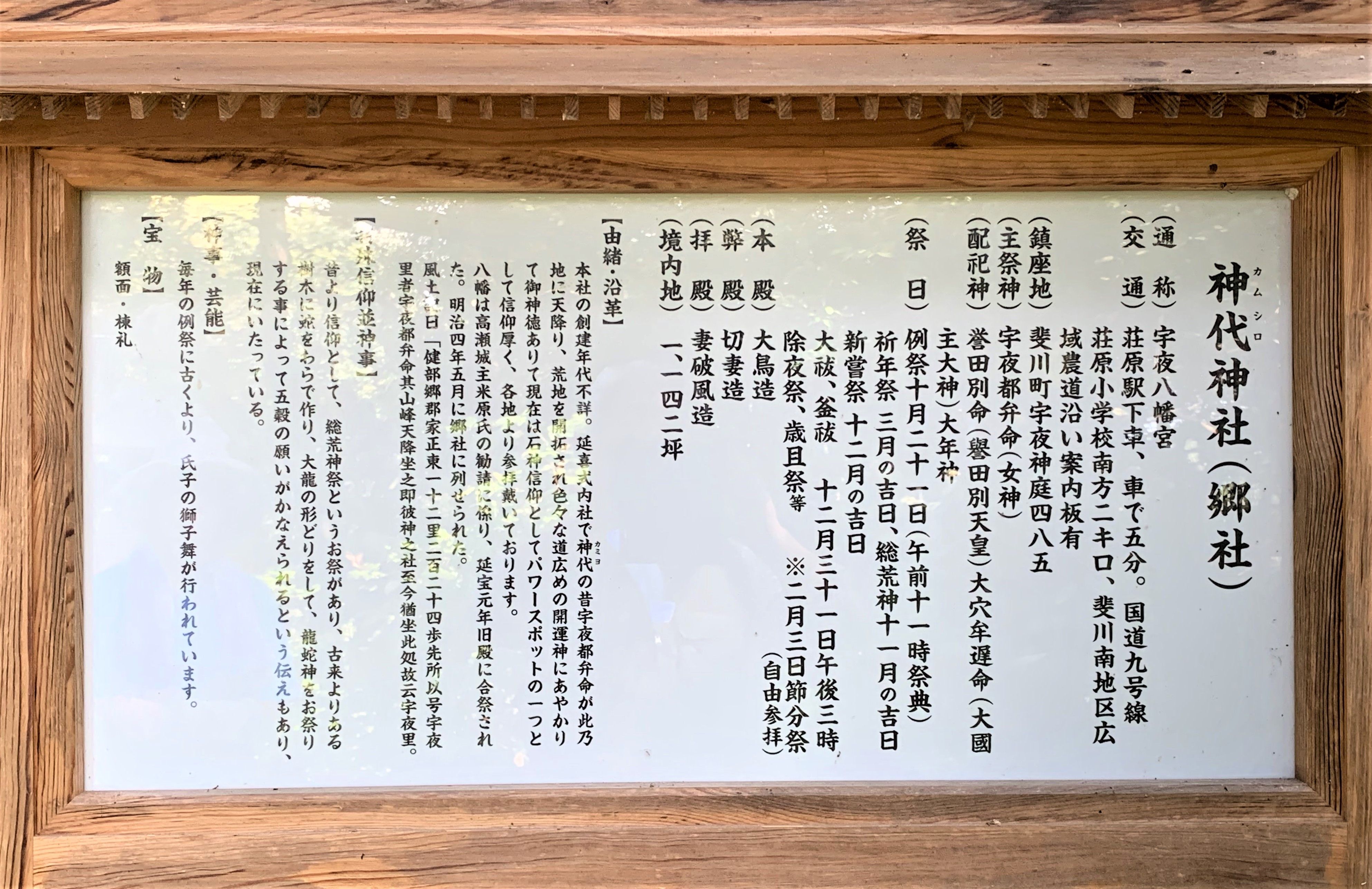 また、この「神代神社」が鎮座する地名「宇屋谷(うやだに)」の、その「うや」という発音を含む周辺の資料を考察すると、