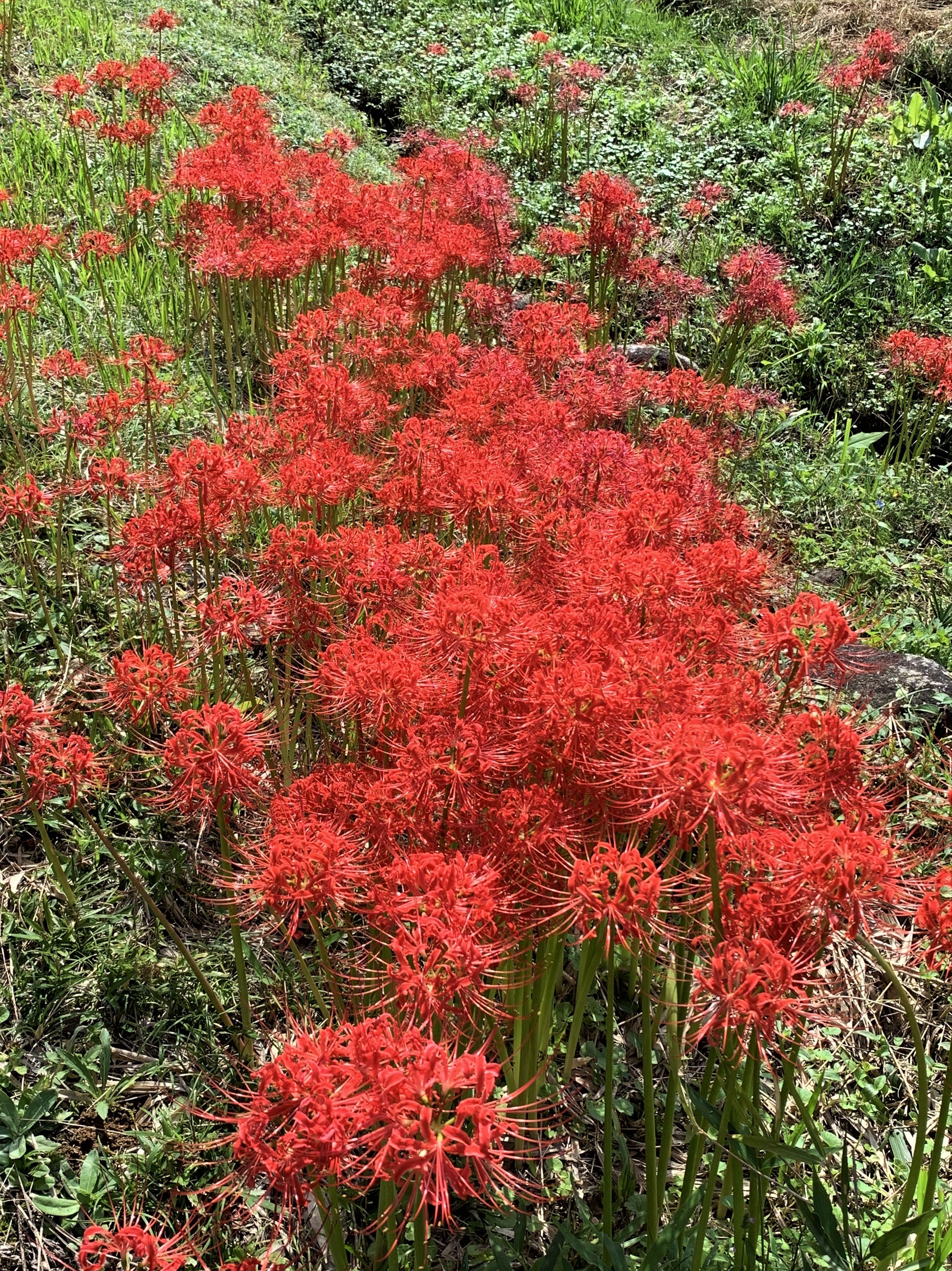 上の画像は、参道脇の土手に咲き誇る彼岸花(曼殊沙華)を撮影したものだ。まるで「宇夜都弁命」の遺徳をあらわすかのように、陽光に映え美しく輝いていた。