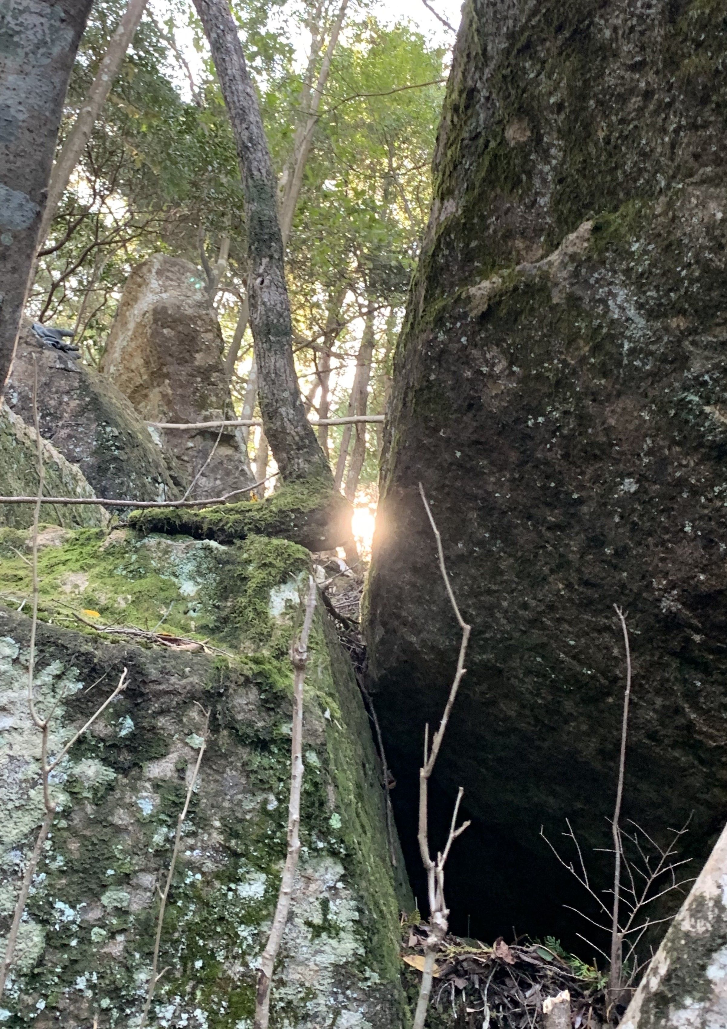 まさしく、この岩間に射し込む陽光を現地で体感すべく「東の山巨石群」を訪れたのであり、感慨無量のひと時であった。
