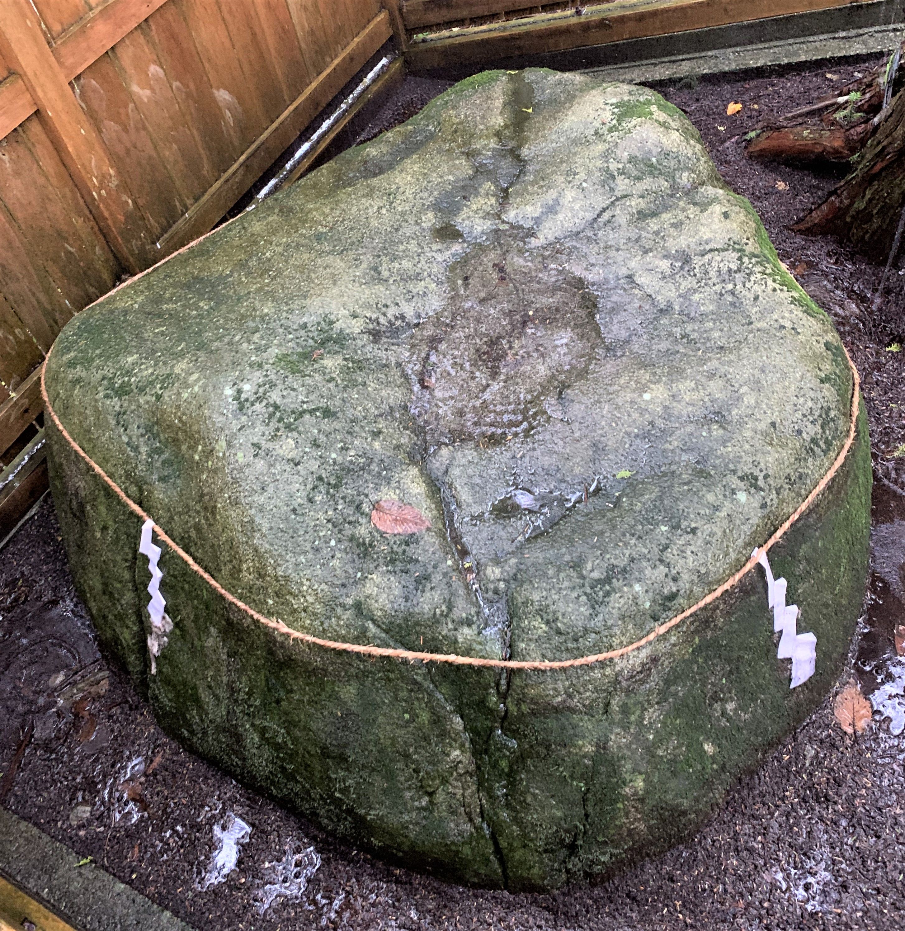 この「磐座」が存在する丘陵地にある解説版を映した画像が上、そしてその「磐座」が示す方位の「東」を上にして映した「磐座」の画像が下である。