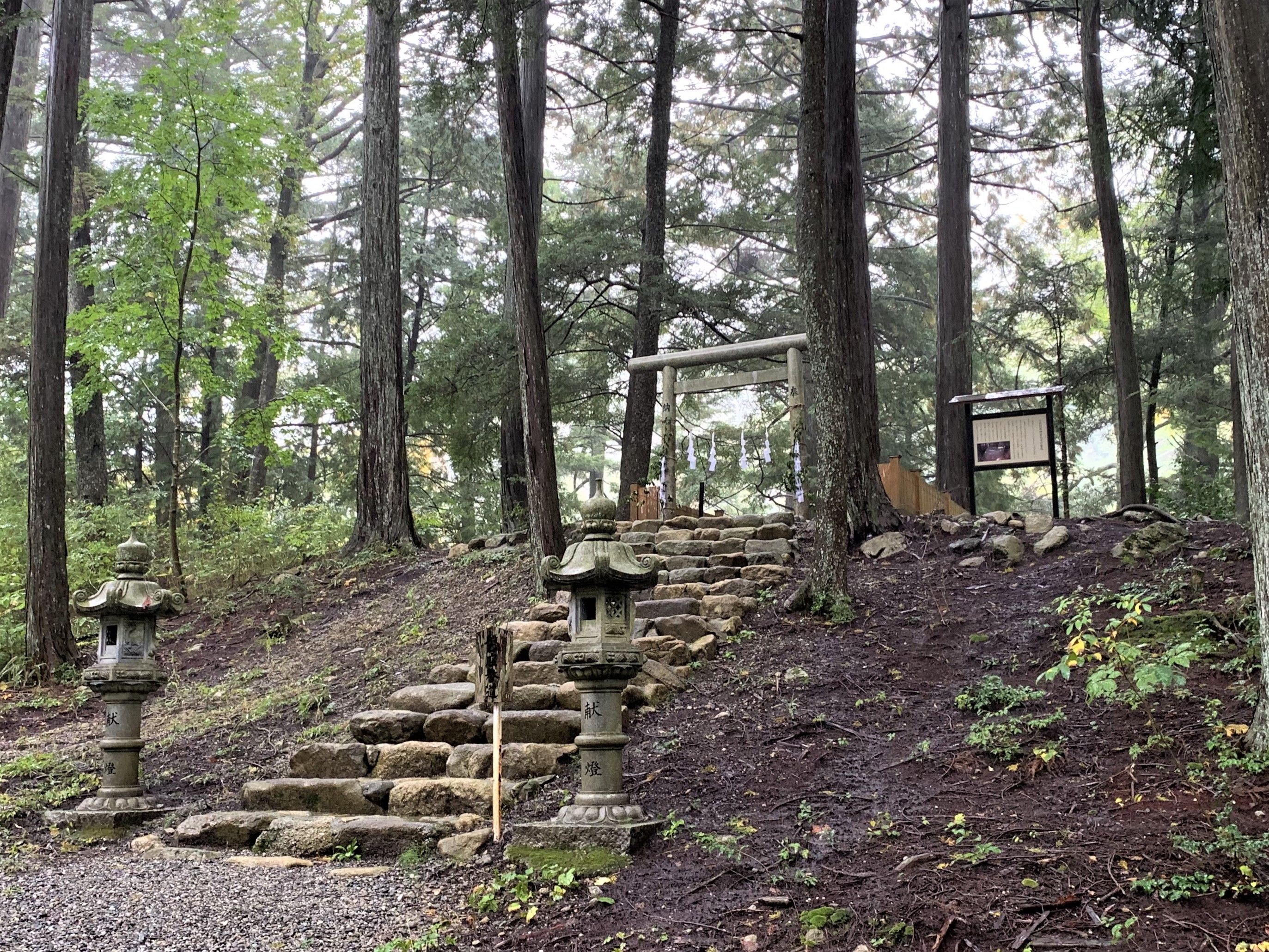 もちろんというか、さすがに登山口から山頂まで標高差約1,100mの恵那山に登る体力は残っておらず、近場から恵那山を遥拝しようと目論んだ10月25日は朝から雨に見舞われたので、当日は恵那山の東方に鎮座し今回で三度目の参拝となる「阿智(あち)神社」(長野県下伊那郡阿智村)を訪ねることにした。