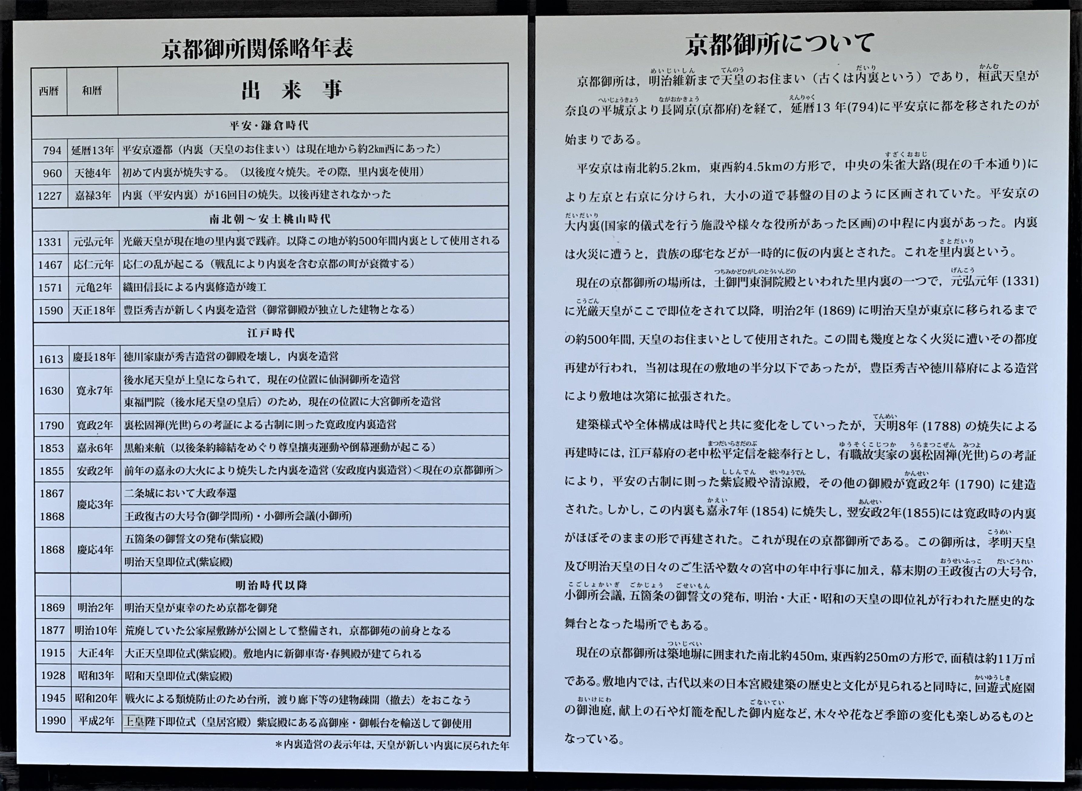 ちなみに「平成」や、この度の「令和」の御代変りに際しては、両陛下の御座を京都御所から東京の皇居宮殿に解体移動して用いられた。
