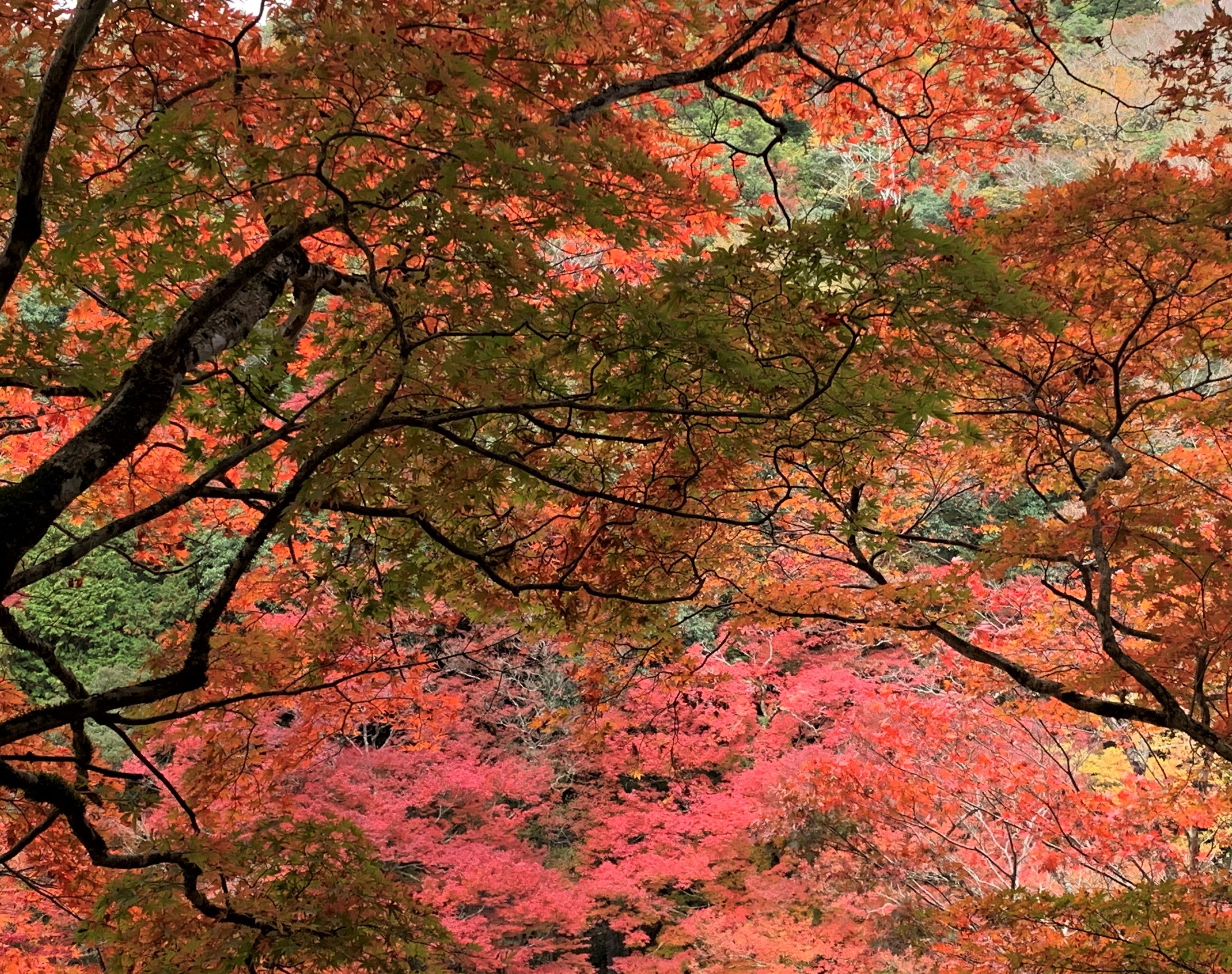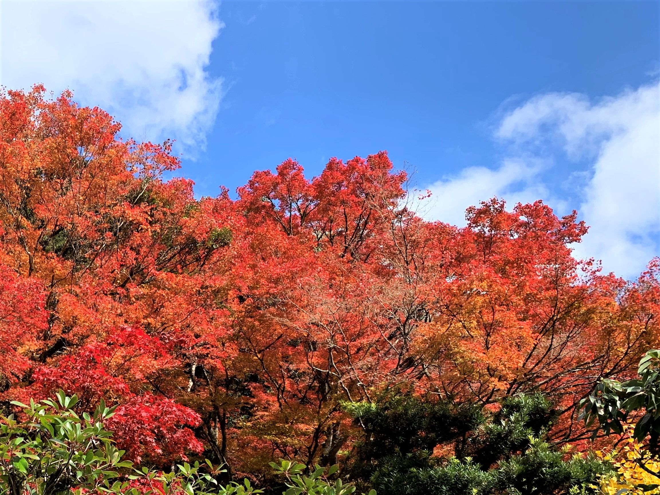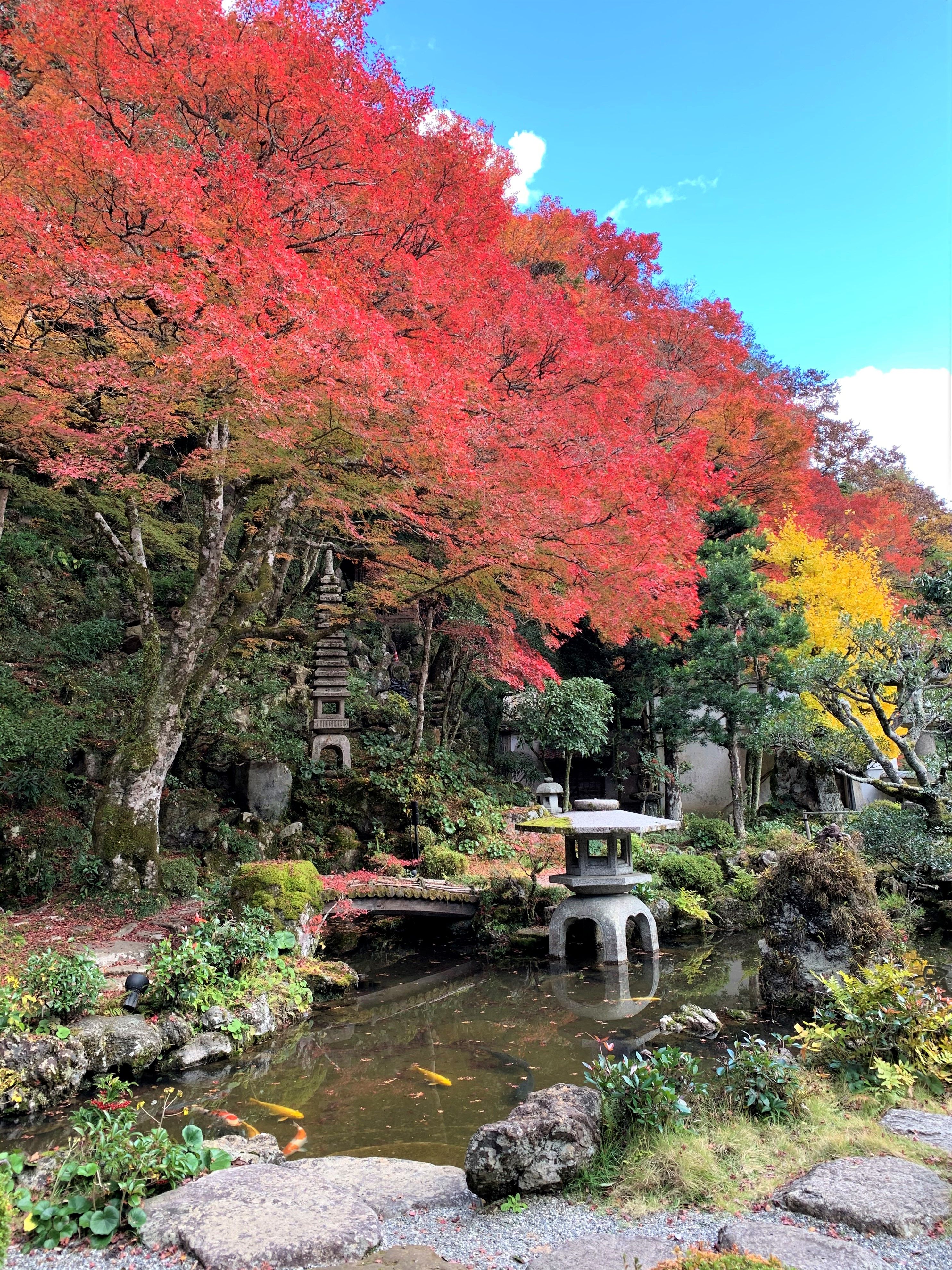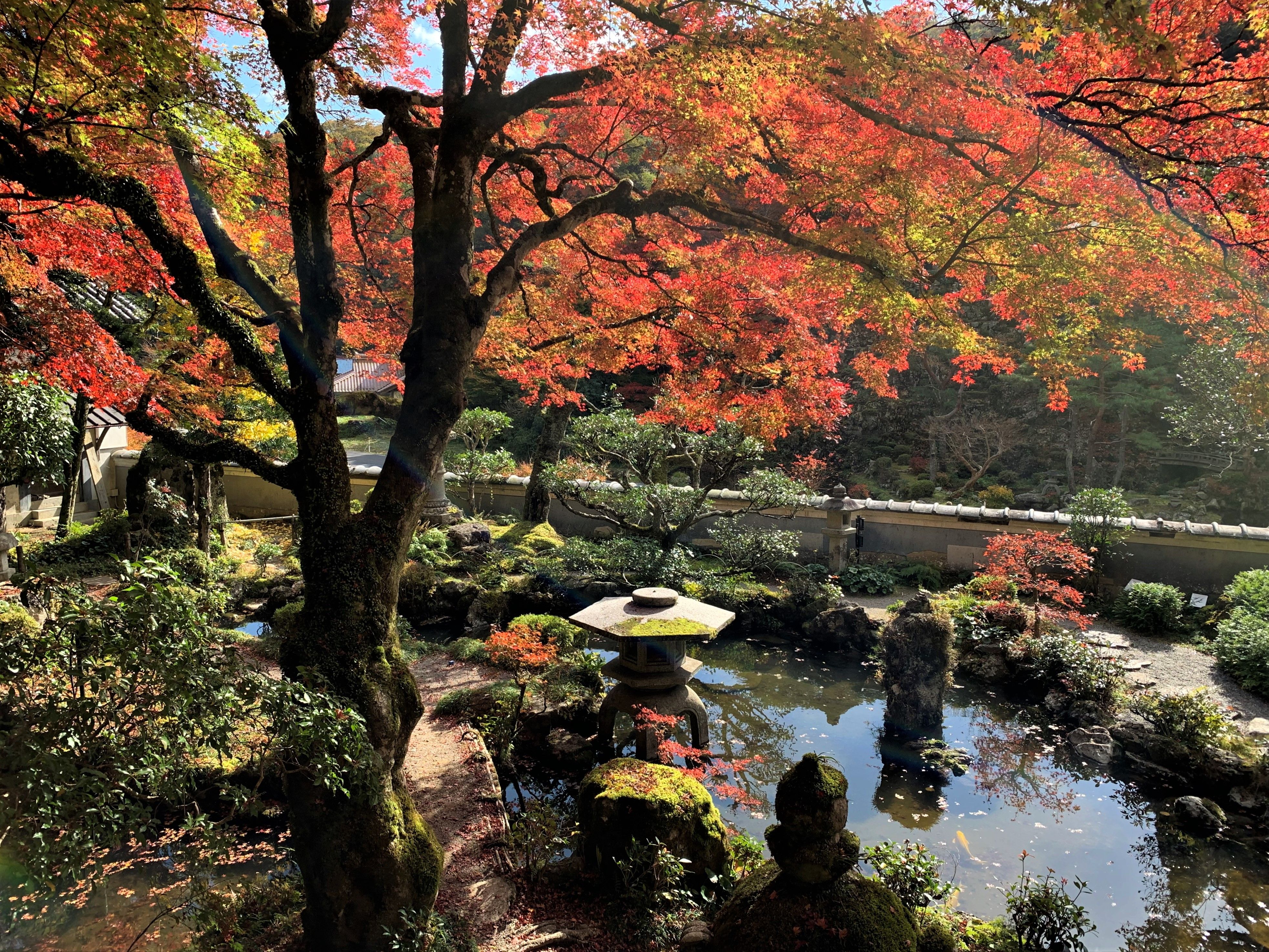 各地を周遊したなかで特に素晴らしかったのは、久しぶりに訪れた国名勝「堀庭園」の紅葉であった。
