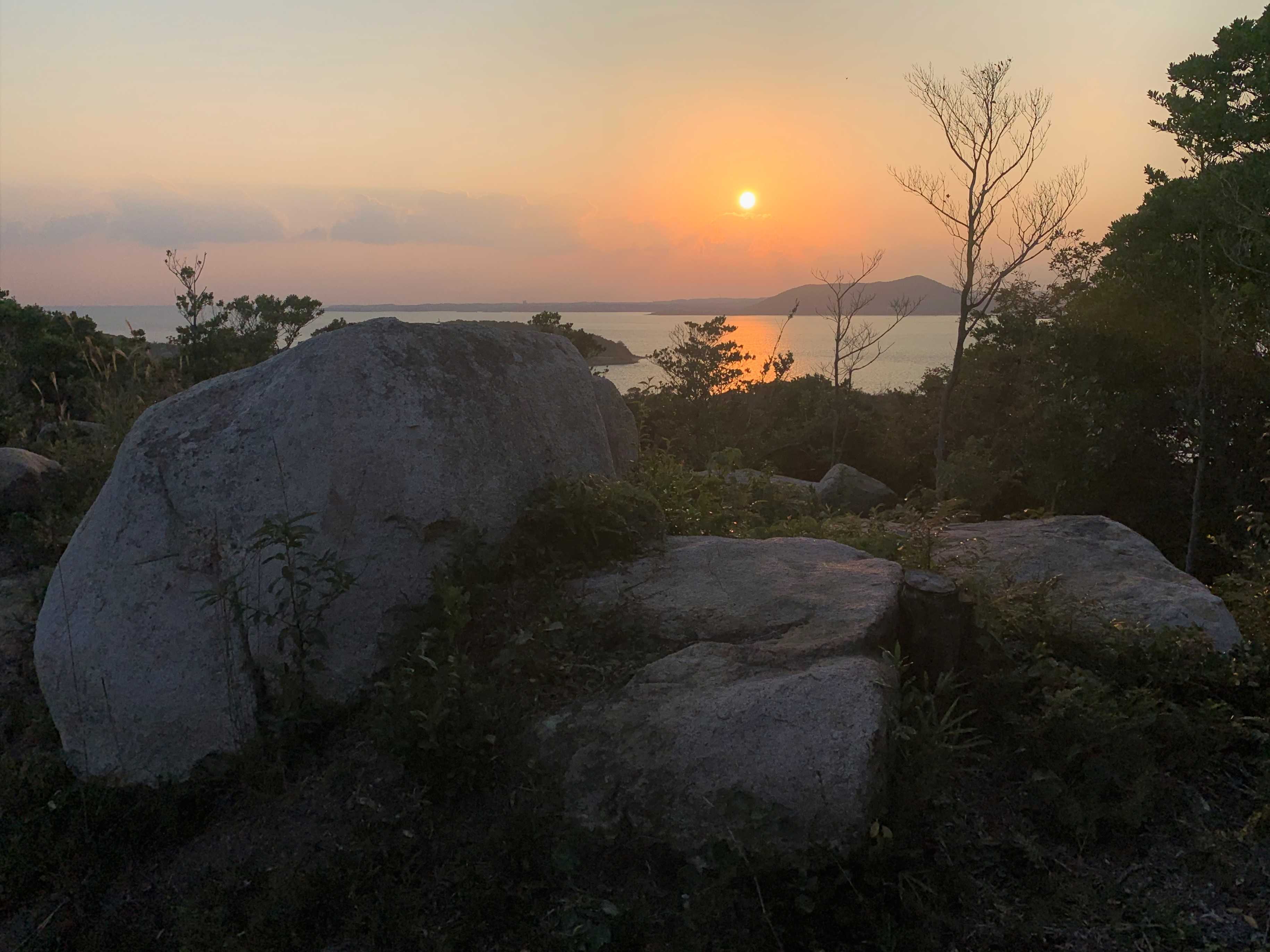 に倣って10月23日の本日、《縄文太陽暦》に基づく”『冬』の始まり”の夕暮れを体感すべく、山口市秋穂二島の「岩屋山(標高101m)」に登った。
