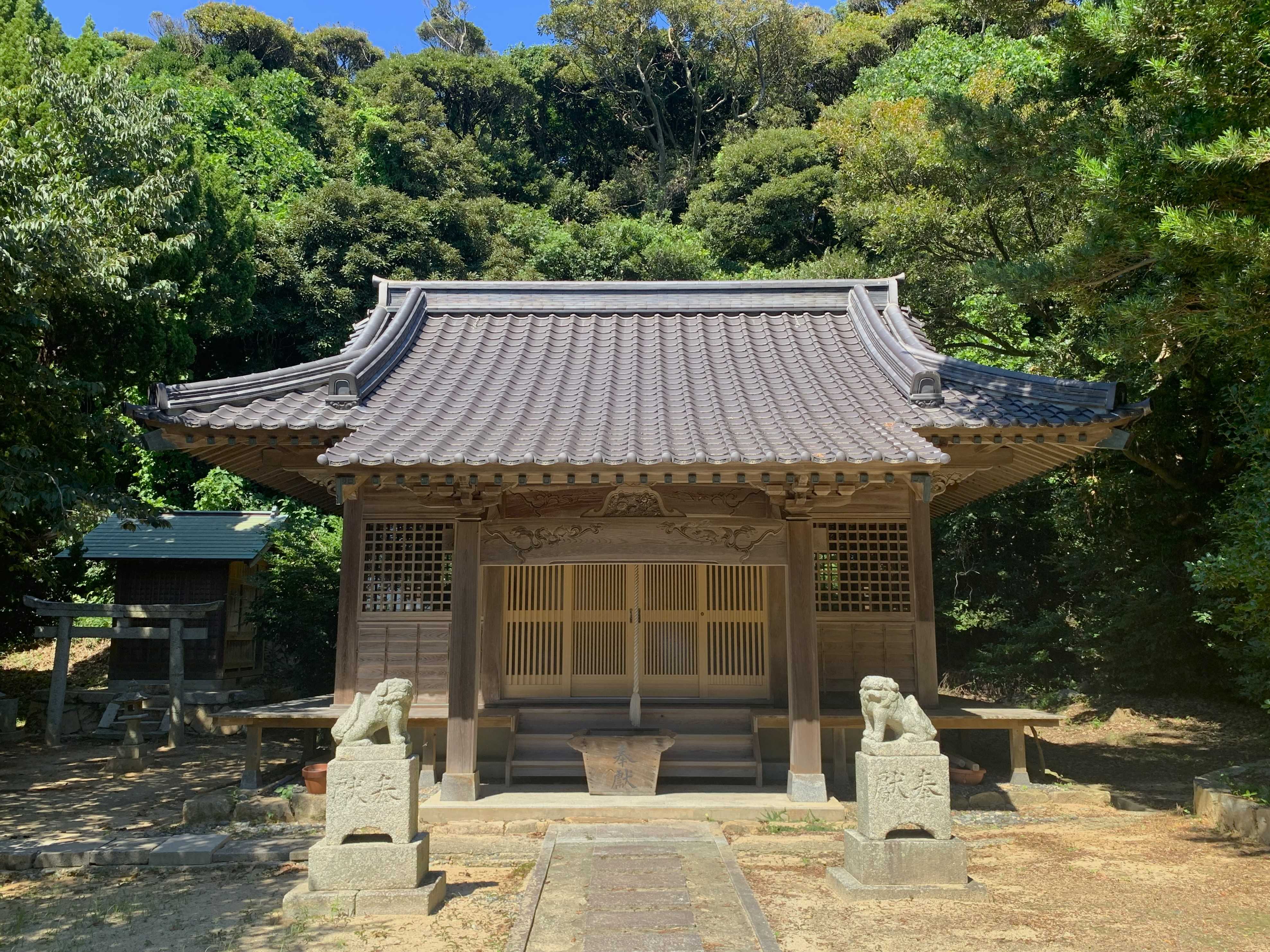 まず当日の限られた時間に向かったのは、同島の港湾に近い高台に鎮座する「蓋井八幡宮」であった。その当社本殿を正面から撮影した画像が上である。(当社祭神…八幡大神・神功皇后)