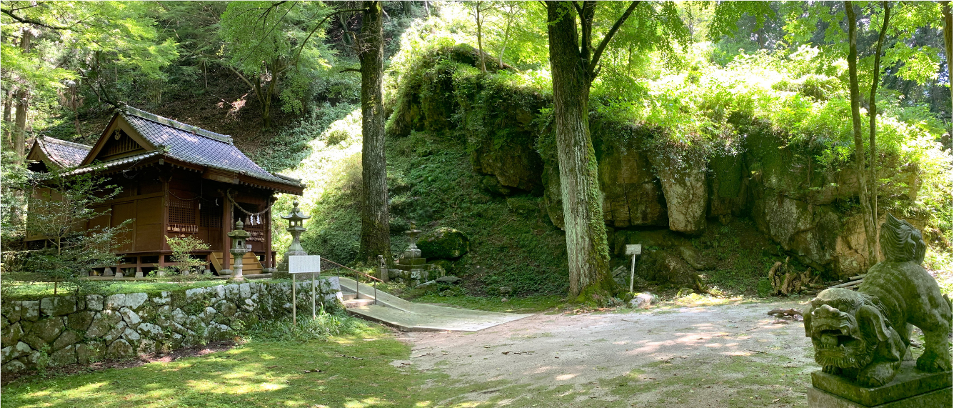 そこで冒頭画像は、「第82代 後鳥羽天皇」を主祭神として祀る当社の境内裏手にあって、おそらく瀧行をする際に丁度良い佇まいの約6mの瀧を撮影したものである。画像のように、たまたま水流が陽光に輝く時間帯に遭遇、まさしくこの地域が聖地であることを感じさせてくれた。