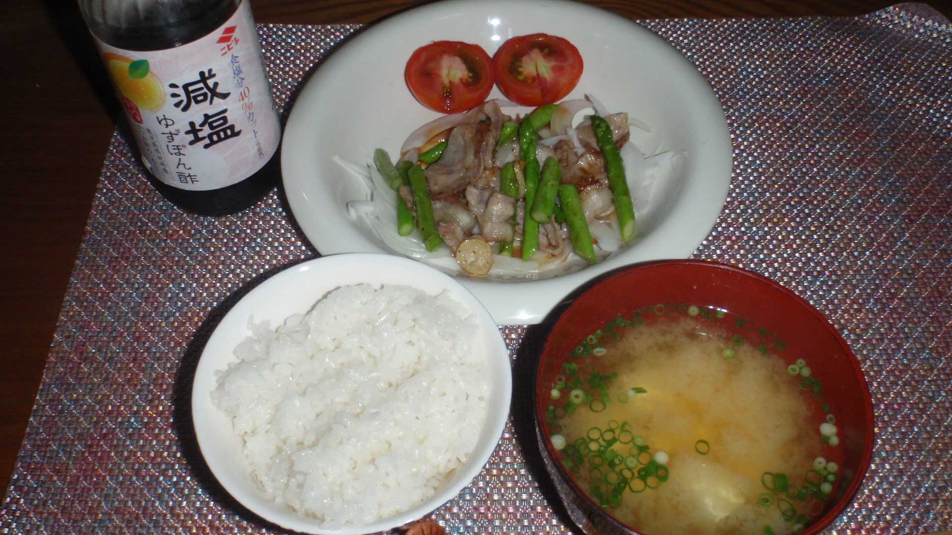 夕方スーパーに買い物に行き、アスパラガスが8本198円(税別)だったのでかごに入れる。アスパラガスと言えば豚バラ巻きだと豚バラの薄切りも一緒に買ったのだが、家に帰って豚バラのパックを開けたら思った以上に1枚が短かった。この長さならばアスパラを巻くには2枚の豚バラが必要だ。豚バラを途中でつないでもいけると思うのだが、今夜はアスパラと豚バラをバラバラに切って、ニンニクと共に炒めてコショウとやさ塩をパラっと打つ。タイトルはアスパラを1本・豚バラを1枚で使わずにバラバラに切ったからね。昨日作ったオニスラの上にアスパラと豚バラのパラバラを乗せて、父が作ったトマトを添える。アスバラには塩コショウを打ったが、下のオニスラのために(減塩)ゆずぽんを振る。今日の酒のアテは充填豆腐で冷奴だったが、その1/4をみそ汁の具にした。みそ汁の具を用意した以上、いつもはみそ汁までは必要なかったというところだが、今夜はちゃんとみそ汁を作る。スーパーに行ったついでに、買いたいものがあったのでダ〇ソーに寄る。目的のものを買って、他に買い忘れた物はないかと店内を見回っていたら、ハウス食品のシャービックを見つける。思わず手に取ろうかとしたがギリギリ思いとどまった。同じハウス食品の製品でも、プリンミクスやフルーチェにはそそられないが、シャービックと今ではアサヒの子会社だが濃縮カルピスは、夏をイメージする特別なものだ。今回は買うのを思いとどまったが、これだけの事件事故が起こっている世の中で、俺が来年の夏まで生きている保証はどこにもないんだよね。もし万が一のことがあって、薄れ行く意識の中で「シャービックを食わなかったことだけが無念じゃ」となったら死んでも死にきれないので、生きているうちに作って食うべきかも。