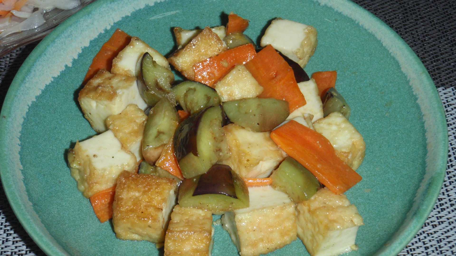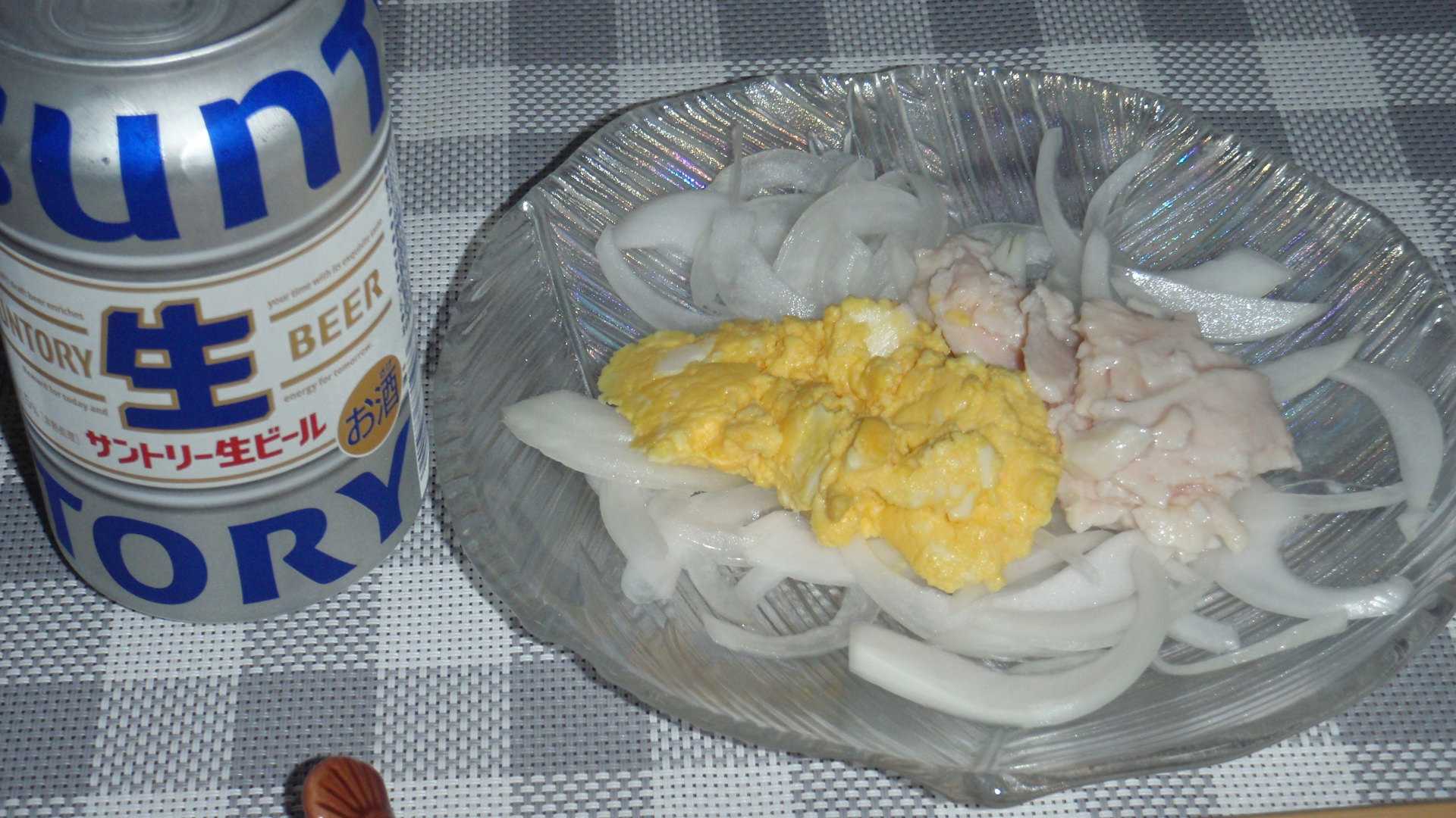 今日は買い物に行っていないので、あるものでおかずを作らなければならないが、小ナスを1本いただいたので、これを使うメニューを考える。厚揚げの在庫が一枚あるので、初めはナスと厚揚げの田楽を考えたのだが、味噌の使用量が多くなりそうだったので、小さく切った厚揚げとナスにダブついているニンジンを炒めて、ここに味噌を酒で溶いてやさ塩をパラっと加えたものを絡める。タマネギはまだたくさんあるので今夜もオニスラに切ったが、いつも同じじゃ面白くないので、ハムとニンジンを切って、レモンエキス・酢・オリーブオイル・やさ塩・コショウでマリネにする。なんか見た目はマリネなのかナマスなのかわからない。今夜は動物系たんぱく質がハム一切れしかないが、酒のアテは動物系たんぱく質だったから。