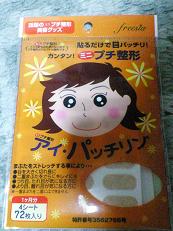 まだ始めて2日目だけど、効果がありそうな気がします!!先日、『アイ・パッチリン』という、目の周りに貼って引っ張ると、貼り方によってたれ目を吊り上げて普通にしたり、切れ長の目にしたりできるとう、プチ整形シールを購入。私の場合、昔はつり目だったはずなのに歳のせいかたれ目になってきたのが気になって買ってみました。中身は絆創膏をめっちゃ小さくして傷口保護の部分をなくしたみたいな感じで、このシールはすご~く伸びます。あんまり引っ張ると目を閉じれなくなるので程々にして・・・ちゃんと朝まで剥がれずについてて、シールをつけてる状態だと引っ張られてます!!1ヶ月続けたら効果あるかも?また1ヵ月後に効果があったら日記書きます。アイ・パッチリンは残念ながら楽天市場でみつけられなかったです。でも、姉妹品を発見ヒッパロン目じりヒッパロン(90枚入り)・(2個組)4026税込・送料別1,050円お顔ヒッパロン(48枚入り)4025税込・送料別1,260円取扱店近鉄百貨店やっぱりアンチエイジング用のシールもあったんだぁ。もう一度、アイ・パッチリン買ったお店を探してみよ~♪まあ、アンチエイジング用のヒッパロンはパッケージがいかにも!!って感じで30代前半の私には買い辛いです(^▽^;)アイ・パッチリンや小顔スッキリンで代用するほうがいいかも?敏感肌の方はご注意ください!!シールをはがす時はオイルをシールに染み込ませてとります。近鉄百貨店では、はがす時専用のオイル(ホホバ油100%)を扱ってないみたいです。私は家にあったバージンオイルを使ってはがしてます。詳しくは、YAHOOの検索エンジンで「アイパチコム」を検索すれば一番上に出てきます。