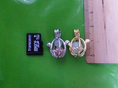 エンジェルチャーム オープン (小) 20×17mm(1ヶ)1個、税込252円エンジェルチャーム オープン (大) 24×19mm(1ヶ)1個、税込273円取扱店ビーズパーツ販売アクセサリー通り私はエンジェルチャーム小の金と銀を1個ずつ購入しました!!すっごく可愛いです。今、中に何を入れようか考え中。天然石が一番オーソドックス?パールを入れても可愛いらしいです。小さな人形みたいなの入れたら可愛いかなぁ?と思ったけど、大きさが小さすぎて中に入るものがなかなかみつからないのと、檻みたいで可愛そうかも?( ̄Д ̄;;