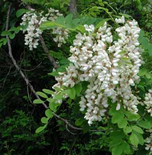 ニセアカシアの花野生化したニセアカシア。右奥の大木が初代? アカシアの花といえば、西田佐知子(古~い!)。と思いきや、「アカシアの雨が止む時」の歌詞をいくら読んでも、「花」は出てきません。ということで、脳裏に「花」が咲いていることにして、今日のブログ。 でも、この「アカシア」はどのアカシアでしょうか。アカシアは南方系の植物ですので、耐寒性の強い、北海道でもよく育つニセアカシアが、この歌にふさわしいのでしょう。しかし、「ニセ」がついた名前はいかにも印象が悪いということで、近年、ハリエンジュと呼ばれます。 東広島では、ニセアカシアの花の最盛期が過ぎました。かの香りも風とともに去りぬ、です。