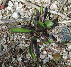斑入りのカキドウシ(グレコマ)を買ったとき、グランドカバー植物と思いこんでいたので、小さい淡紅紫色の花を見つけたときのオドロキ!写真では接写でそれなりの大きさに見えるけれど、仙人のカメラではこれ以上近づけないのです。(もし近づけても腹這いにならないと・・) 唇形の花形や花のイメージは、野草のムラサキサギゴケ(2005年4月11日のブログ)にとても似ている。ただムラサキサギゴケの花はまだ見かけない。 カキドウシの左隣には、只今生育中のノジスミレが、そしてその下には幼い姿のマツバウンラン(2005年4月17日のブログ)が集っている。