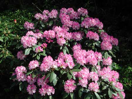 安芸西条盆地を見下ろす標高500mほどの山上に建つ福成寺のことは、このブログでも取りあげたことがある。近くには東広島天文台もあるが、森で隔てられて互いに見えない。 福成寺には昔からシャクナゲがあったと思うが、最近少しずつ増やしているのだろうか。ちょっと前、朝日新聞の広島版と中国新聞に写真が載って、広く知られることになったよう。 うちの裏山だから出かけてみると、山門から始まって、「夫婦杉」やトチノキの巨木の下に、あるいは森の高木に埋もれて、点々とシャクナゲが咲いていた。中木をなすのはヤブツバキなどで、シャクナゲがあまり「我」を主張していないのがいいと思った。(下の写真は夫婦杉)
