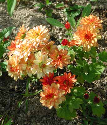 この4,5月に蒔いた夏・秋用の草花のうち、最後に咲いたのがクッションマム(ジュエルグローリー)。クッションマムは菊の1つだが、草丈が30センチ程度だから、倒れたりして草姿が乱れることがない。いっぽう摘心しなくても、枝が広がってくれる。手間いらず。 蒔いたタネにはいろいろ混じっていて、色は白からエンジまで。花びらも多いものから少ないものまで。とうぜん、菊は多年草なので、気に入った個体を挿し木して増やせとある。 タネからの菊は、有意義だった!