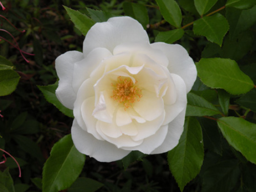 あちこちの庭園で見かける、中輪の白バラ。今年は気候のせいか、肥料のせいか、最高のできだ。ハナムグリからみた好みは中、みなが仙人からみた好みは上。