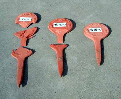 きのうわが家の庭を見て驚いた。バラの前に挿しておいた「ネームプレート=写真」が壊れている。子どものいたずら?だが、その場所で静かに崩れ落ちていた。