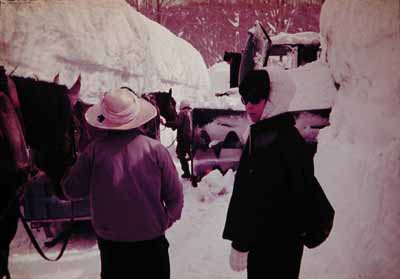 今では機械力が発達して、酸ヶ湯に1年中バスで行けるという。ここに紹介するのは、そうでない時代の「クラシック写真」。セピア色のモノクロ写真ではないが、それに近いカラー。
