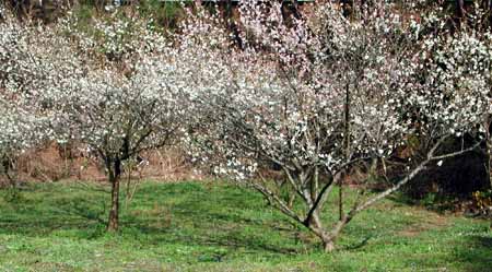 ウメは十本ほどあります。ほとんどが白の一重でわたしの好みです。あとはピンクと紅が一本ずつくらい後の方に・・注目点は、木が若くて、バランスが取れている。少女のようです。でも、3年前から見ているんでが、ほんの少し老けたかな?もう1つの注目点は、じつによく咲き揃うことです。理学部の先生が植えたと思うので、遺伝子を揃えたのかな?