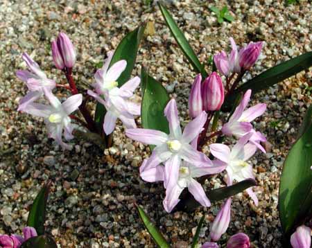 yumi912さんのところで話題になったチオノドクサも、アッという間に花をつけました。まこと、体温をもたない植物に及ぼす気温の効果は、目を見張るばかりです。