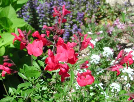 シソ科ですから、葉っぱをちぎって鼻に持っていくと、強い香りが鼻を刺激します。ひとそれぞれでしょうが、赤らしい赤の花とともに、私の心に爽やかさを呼び込みます。