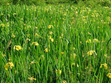 三永水源地の上部には小さい川が流れ込んでいますが、長い間に土砂が堆積して陸地化しています。キショウブはそんな湿地が好きなようです。