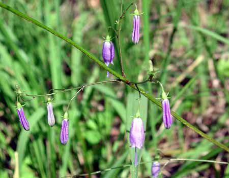 そこで見つけたのが写真の野草。ツリガネニンジンによく似ているのですが、花冠の先端部がくびれているとか、花柱が花冠の2倍くらいあるとかの点で、ツリガネニンジンと一致しません。そしてたどり着いたのが、サイヨウシャジン。自生地の記載では中国地方以西となっており、とくに山陽で言えば岡山より西だとか。