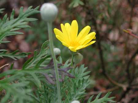 今日の花も福山市南部で撮影したもの。写真を撮るときには簡単に名前が分かるつもりだったが、どうも分からない。仕方なく、無名のままブログに出すことにした。ご存じの方、名前を教えてください。(追記:ユリオプシスデージー?)