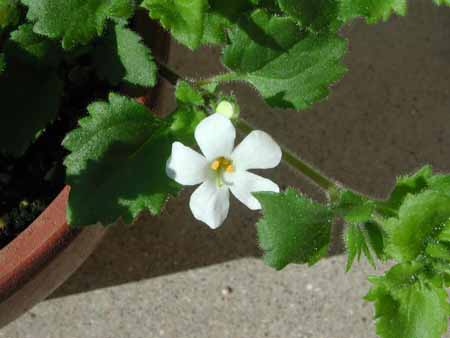 12月の寒さで、鉢植えがまず危険信号を発した。とうとう葉が枯れてきたので、家の中へ。最低気温が5度ほどの環境。それから2ヶ月ほど、春の陽射しの下、やっと花を着けた。メデタシ、メデタシ。