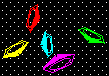 普通に見れば、昔、男の子が遊んだ「ベーゴマ」をいろいろに色づけし、回転させたりしながら、グラフィックに配置したと思えるだろう。あるいは、もっと深淵な空想も・・たとえば、遠い宇宙の星雲。